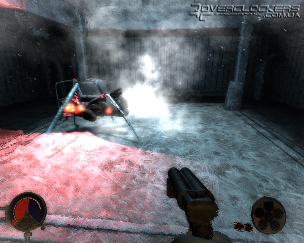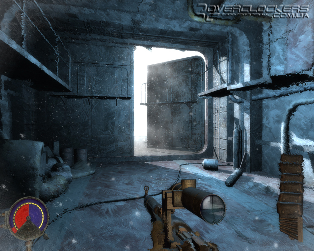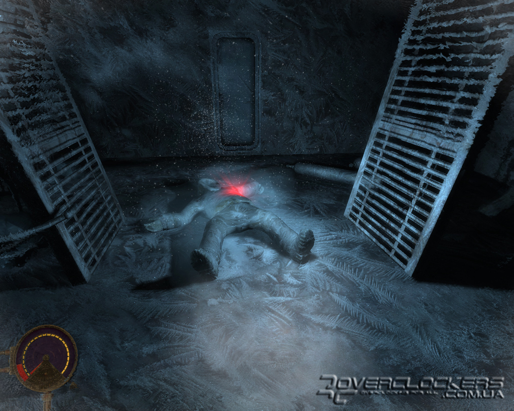 Графика в игре, без преувеличения, великолепна. Мрачные темные отсеки с покрытыми льдом стенами выглядят более чем убедительно. Причудливые ледяные узоры просто завораживают, причем ощущение объема не теряется, как бы близко вы к ним не подошли. Оледенелая кромка экрана вместе с тяжелым паром нашего дыхания усиливают эффект полного погружения в этот мир, а парящие в воздухе и искрящиеся на свету снежинки добавляет глубины и вязкости пространству внутренних отсеков корабля.