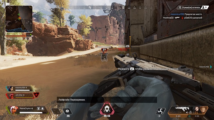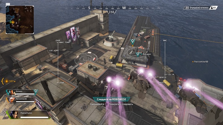 Здесь даже высадка на карту делается вместе. Игра случайным образом назначает главу отряда и тот решает, в какое место спускаться. Напарники могут предлагать свои варианты высадки, а если рандом назначил лидером новичка, то за секунду управление передается опытным тиммейтам.