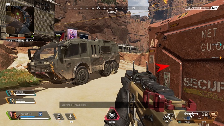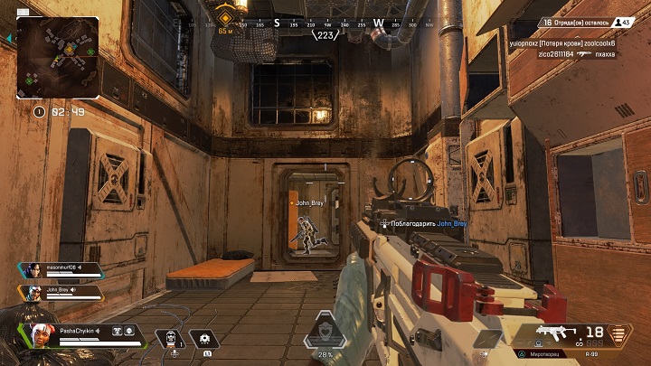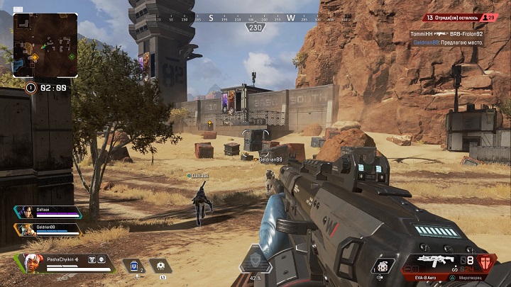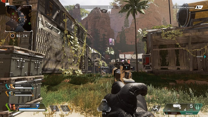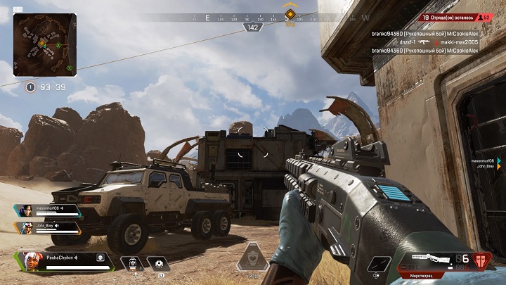 Есть в Apex Legends и свои фишки. Так, здесь нельзя играть в одиночку — только в команде из трёх человек. Поэтому, если вы не с друзьями, система автоматически доберёт группу. На карту высаживается не 100, а 60 игроков (двадцать троек) и состоят они не из обычных безликих болванчиков, а из героев, со своими активными и пассивными умениями, а также ультой. В этом Apex Legends похожа на Overwatch и подобная особенность идёт проекту на пользу. Например, время одной сессии редко длится больше 20–25 минут и они просто не успевают надоесть.