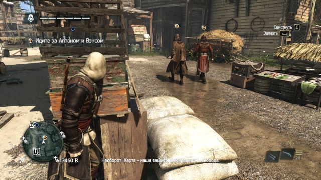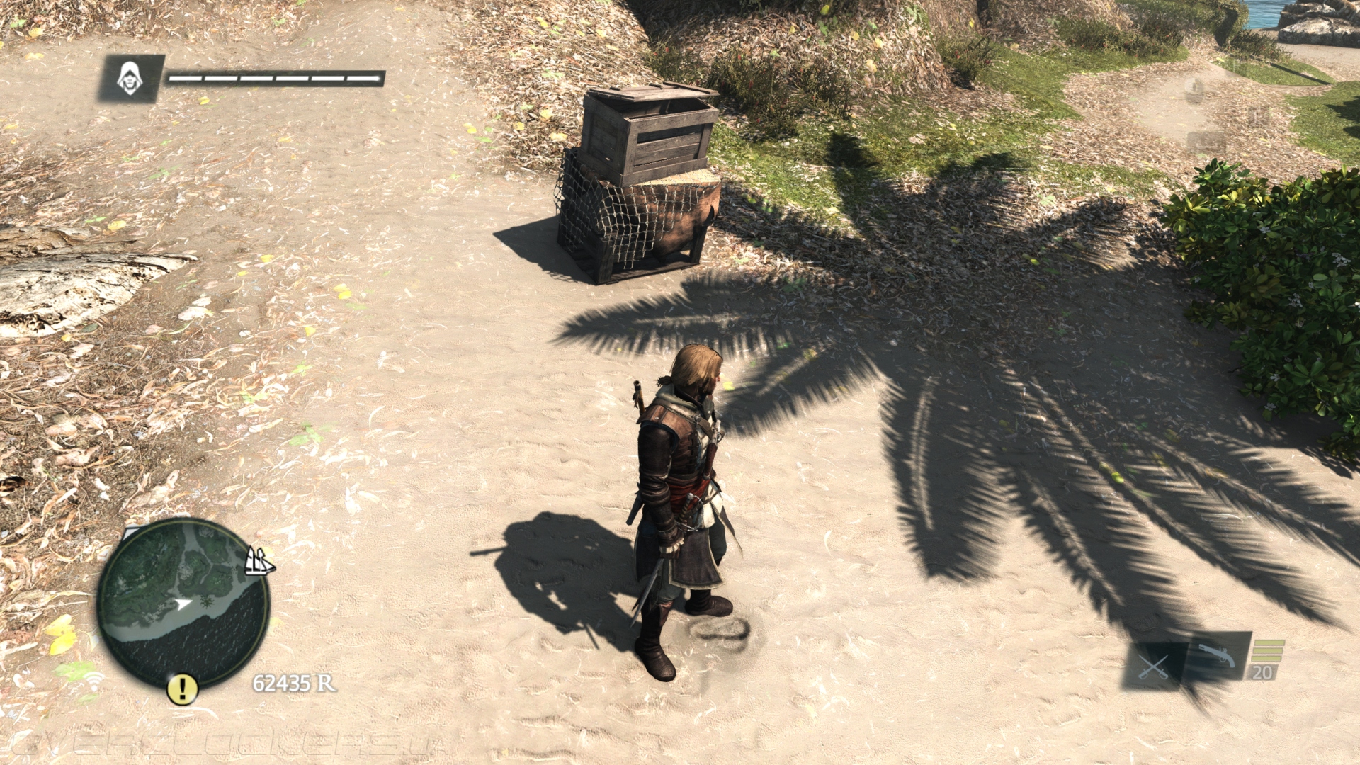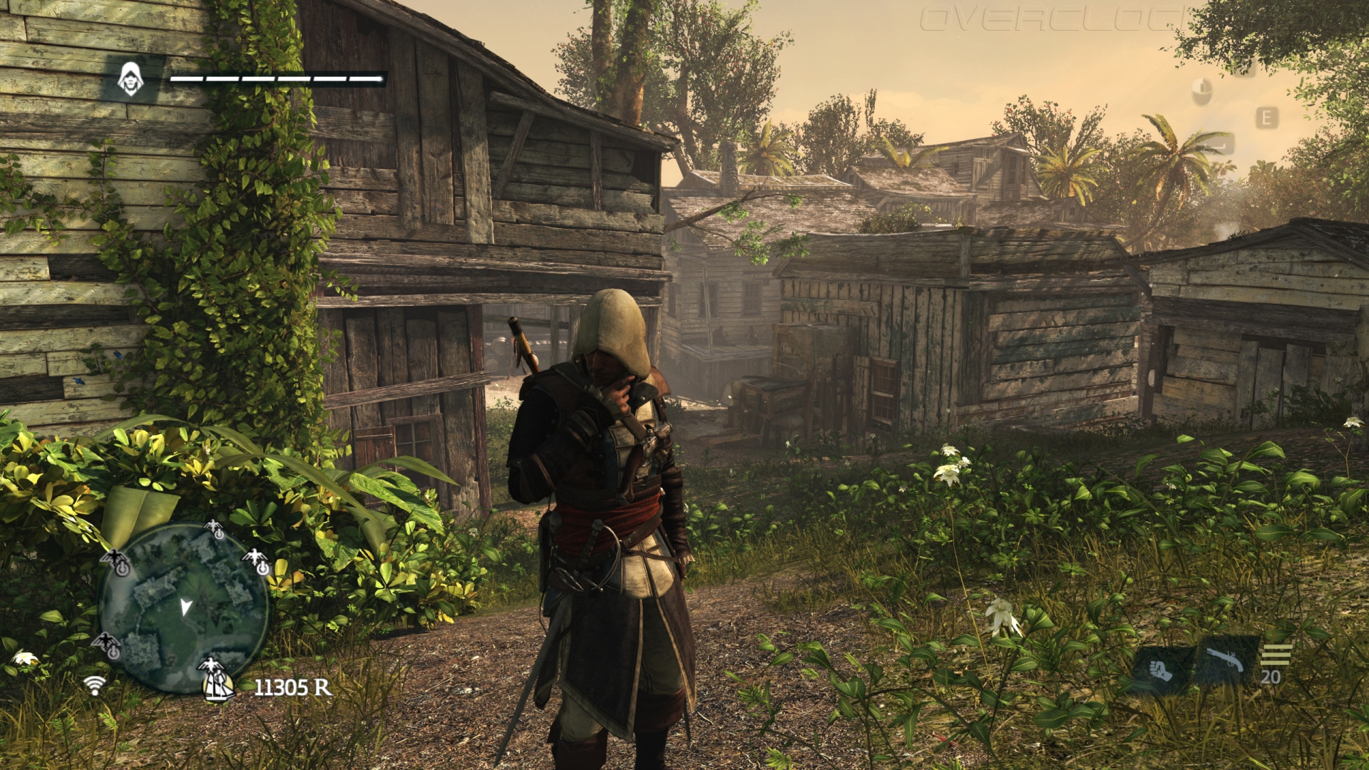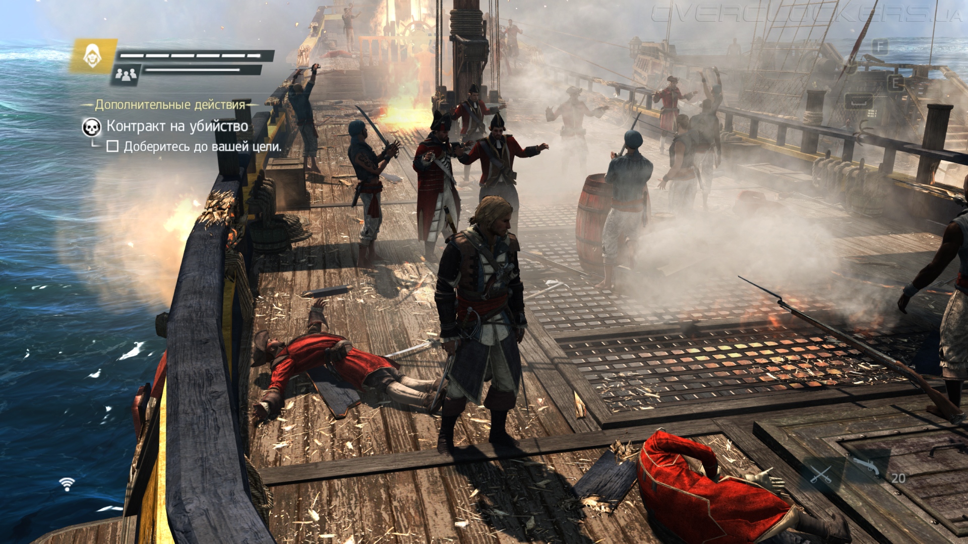 В целом, игровой процесс на суше остался почти без изменений. Мы взбираемся на обязательные вышки для синхронизации и открытия новых участков карты, собираем предметы и выполняем мелкие побочные задания. Среди новых задач — поиск кладов. Вначале мы находим какую-то карту, а потом по ней разыскиваем место, где закопан сундучок с золотишком. Вместо летающих рукописей теперь предлагают бегать за листками с пиратскими песнями для нашей корабельной команды. Есть ряд контрактных убийств для ассасинов. Они доступны с самого начала игры, хотя по сюжету в курс дела нас вводят лишь спустя несколько миссий.