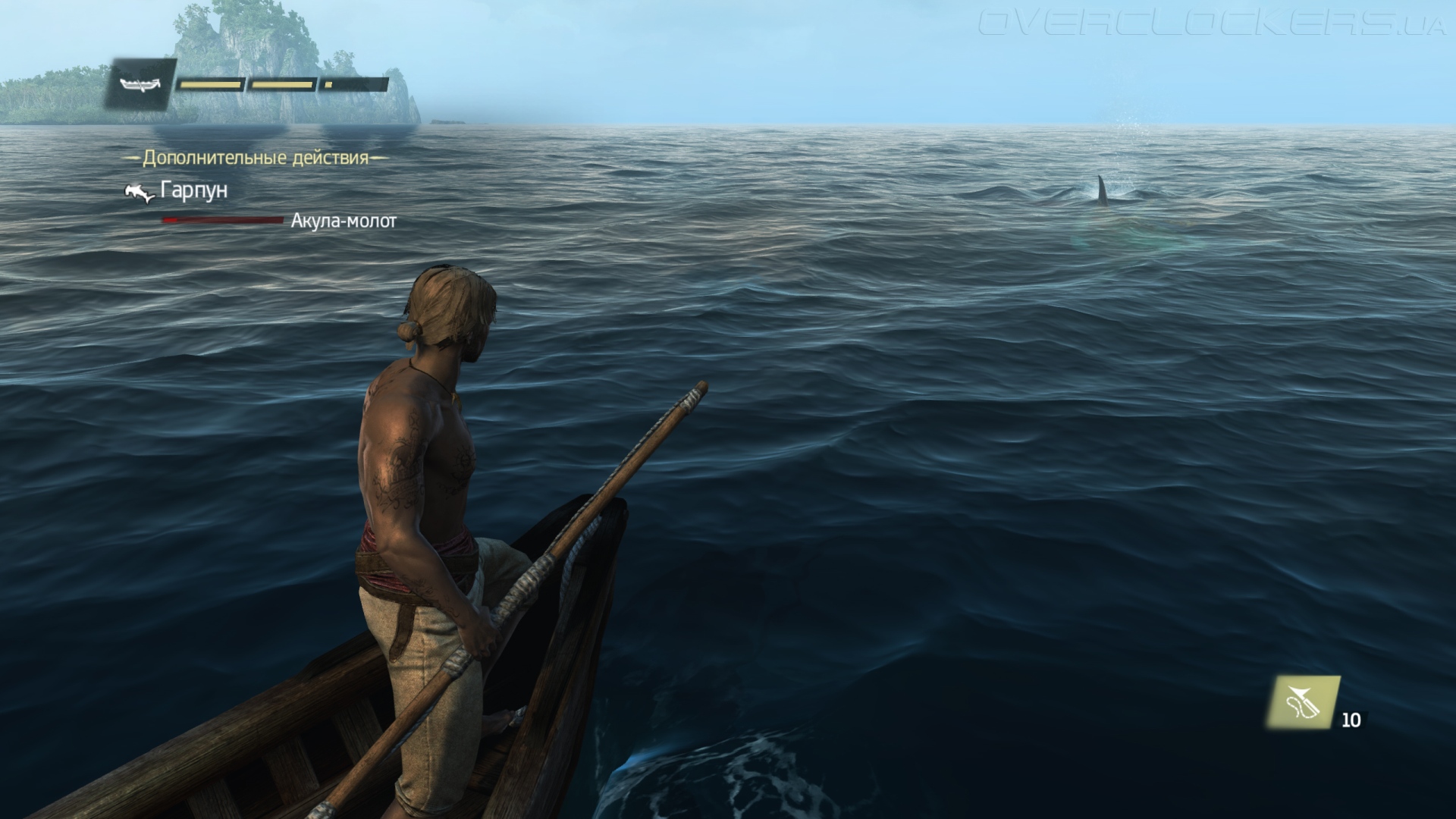 Еще одно неожиданное нововведение в игре — подводные миссии. Полученный в одном из сюжетный заданий колокол позволит опускаться на дно возле затонувших судов и собирать припрятанные на них сокровища. Опасностей под водой тоже много — акулы, мурены и морские ежи, облепившие остовы корабля.