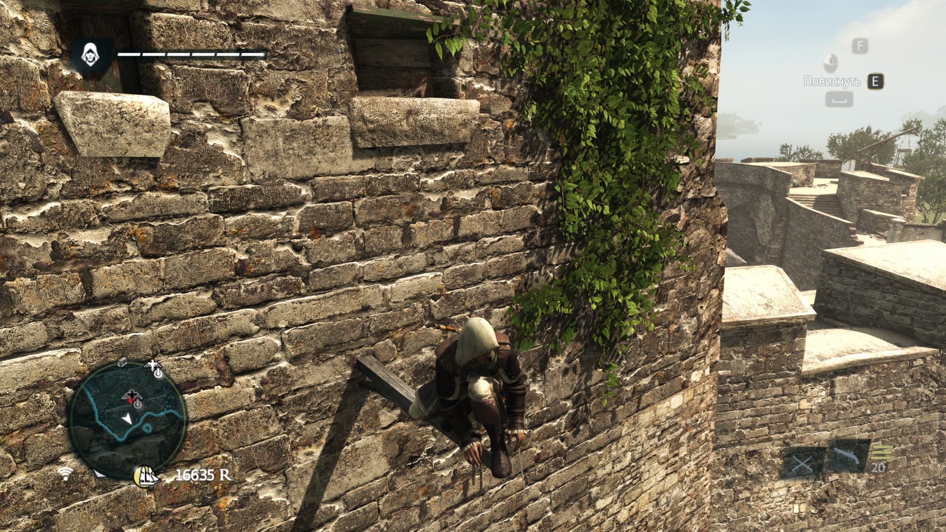 Протагонист скачет по крышам и ветвям деревьев не хуже любого старого героя Assassin's Creed. Умело карабкается по стенам, уступая Коннору только в умении взбираться по скалам. Более важную роль в скрытной системе стала играть растительность, которая теперь выглядит намного симпатичнее. Различных кустов и зарослей больше, что позволяет дольше сохранять инкогнито. Есть традиционные телеги с сеном и кучи листвы, где герой тоже может прятаться. В остальном же скрытность работает строго по старым схемам. Избегаем взглядов охранников, вжимаемся в углы или уходим на крыши, подманиваем из засады часовых свистом и уходим от погонь, отсиживаясь в кустах и сене.