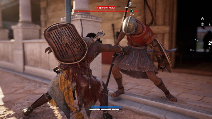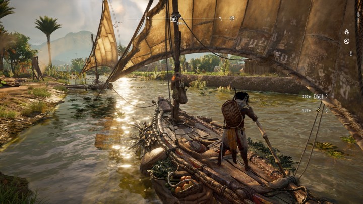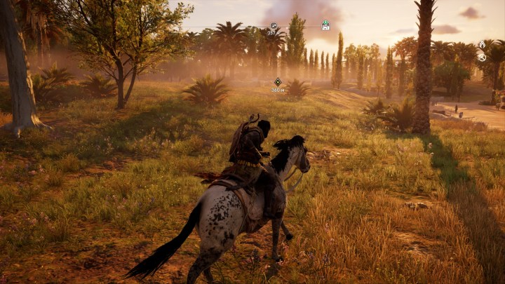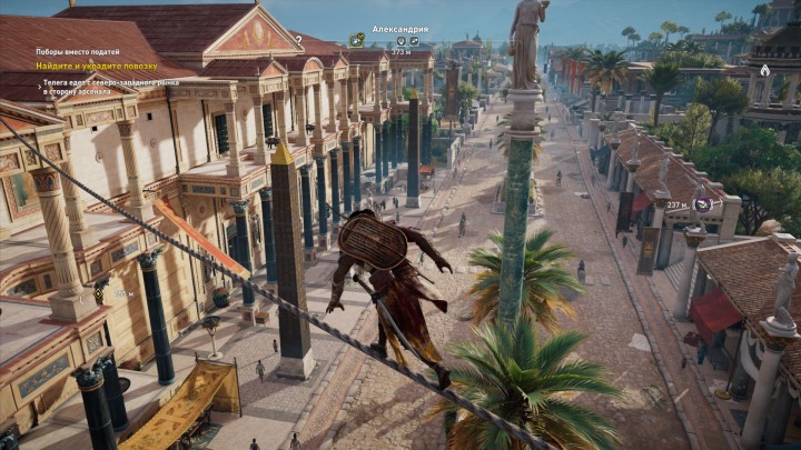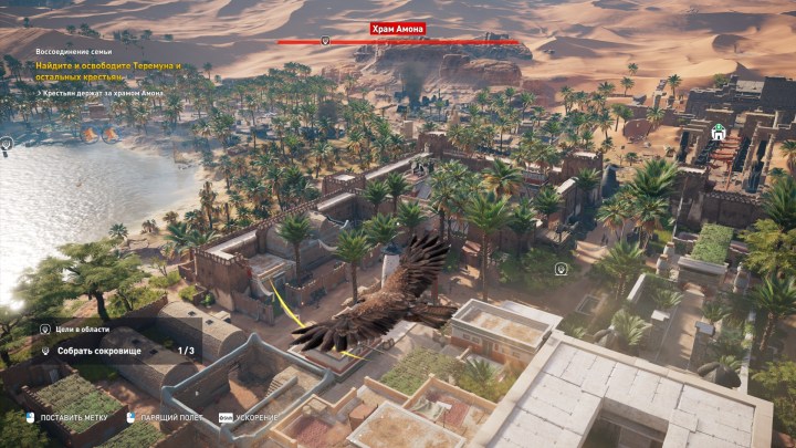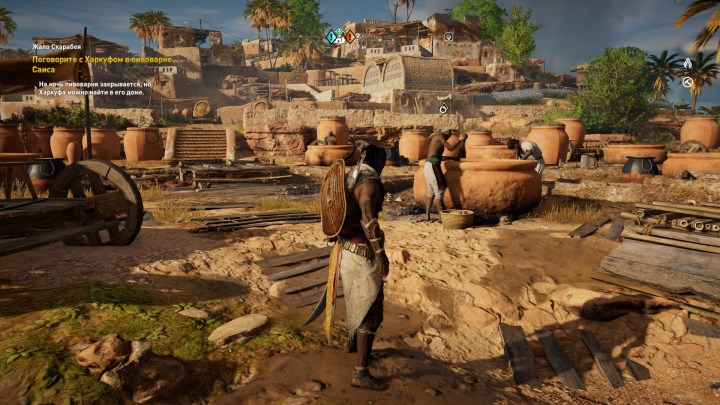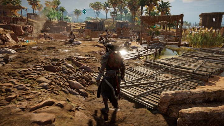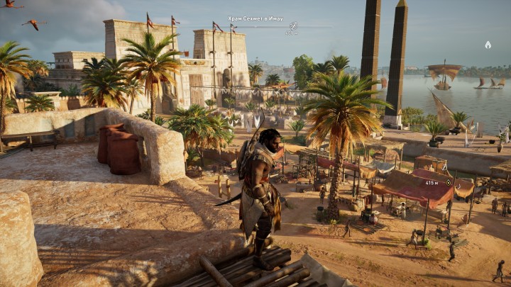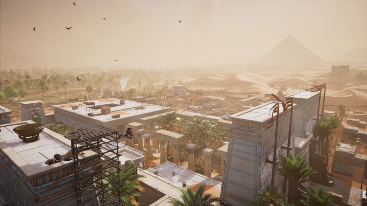 Природные особенности Египта накладывают свои ограничения. Это не городской Assassin's Creed в духе Unity или Syndicate — нет пробежек через городскую застройку с петлянием внутри урбанистических лабиринтов. Не всегда можно удерживать доминирующую высокую позицию над врагом, мы не можем лазить по пальмам, а высоких зданий в небольших селениях почти нет. Если вы пытаетесь быть скрытным, чаще нужны наземные укрытия, где можно спрятаться в кустах или куче сена. Хотя эти нюансы не сильно меняют общую суть игры.