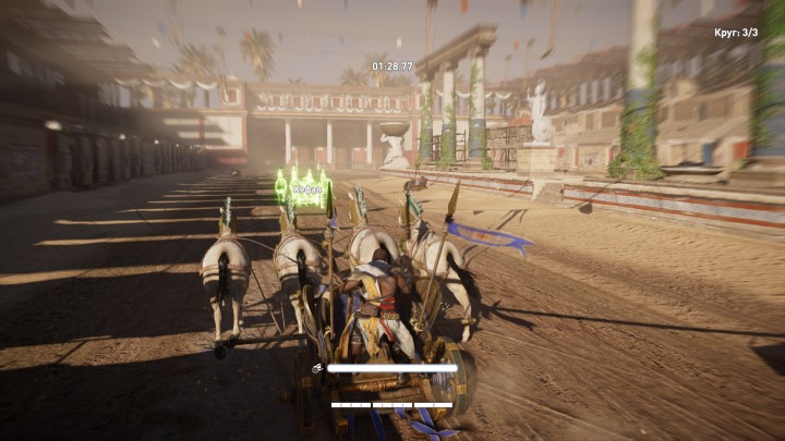 Чтобы улучшить амуницию и некоторые характеристики нужны редкие компоненты. Что-то можно найти в древних гробницах, а что-то можно украсть. Даже на начальных этапах наличие банального дерева может стать небольшой проблемой и потребуется налета на перевозчика. Так что грабить караваны тоже можно. А в перерывах между разными заданиями можно принять участие в заездах колесниц на ипподроме или испытать свои навыки в гладиаторских боях.