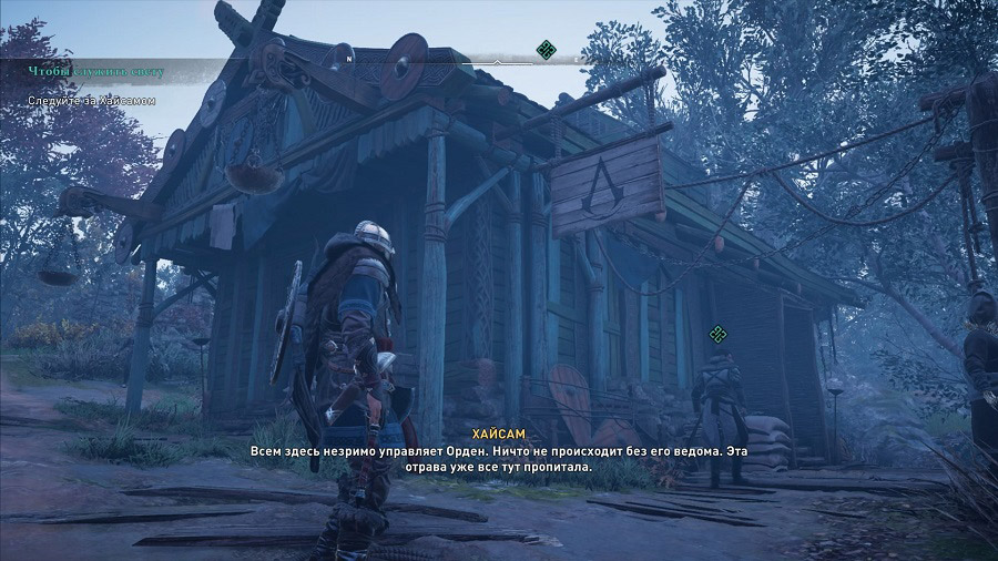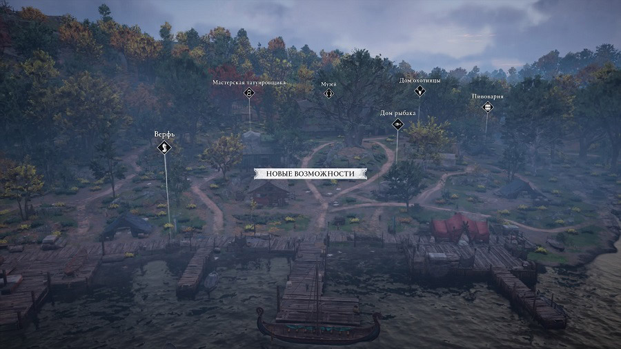 Есть тут и мирные занятия. Эйвору предстоит развивать поселение викингов, строить новые здания, зазывать жителей и увеличивать влияние. Для постройки особых помещений требуются ресурсы, добываемые в набегах на монастыри. Игроку доступны пивоварня, постройка для Ордена Незримых, которые помогают героям и обучают навыкам ассасинов, хижина рыбака, конюшня, верфь и прочее. Каждое здание дает полезные, но не обязательные бонусы и расширяет игровой процесс. Можно научить лошадь плавать, изменить прическу и внешний вид экипировки, достать редкие предметы за рыбу или подстреленную дичь, поторговать с купцами, решить спор местных жителей и сделать еще кучу разных дел.