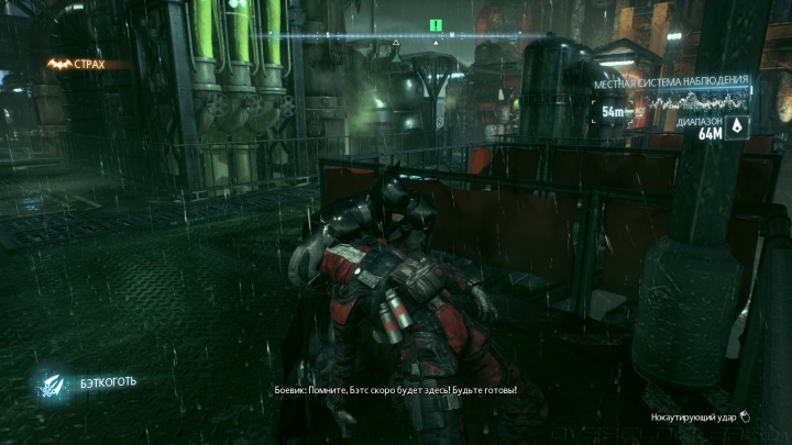 Идти в лоб на отряды с огнестрельным оружием не стоит, ибо шансы выстоять малы. В таких случаях лучше действовать скрытно, используя высокие позиции для внезапных ударов в планировании, подбираться через систему вентиляции и шахты коммуникаций, использовать для укрытия элементы окружения. Тут вам и внезапные выпрыгивания с быстрыми ударами, и подвешивания жертв на тросе под потолком, и проламывание стен тушками бандитов во время очередного приема. Все, за что любят Batman, никуда не исчезло.