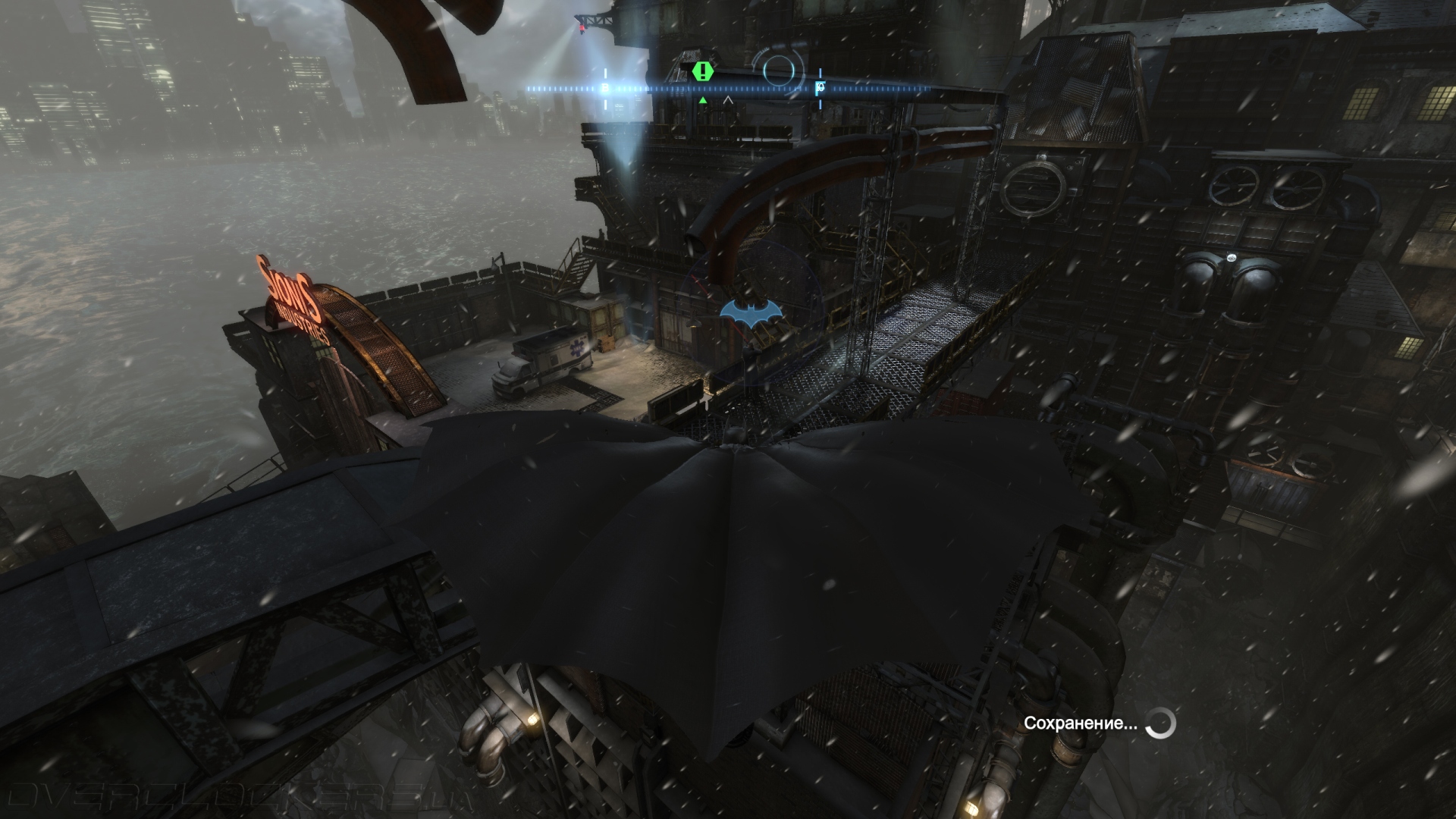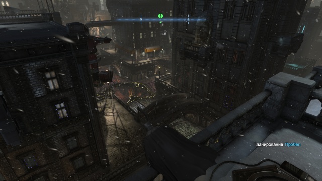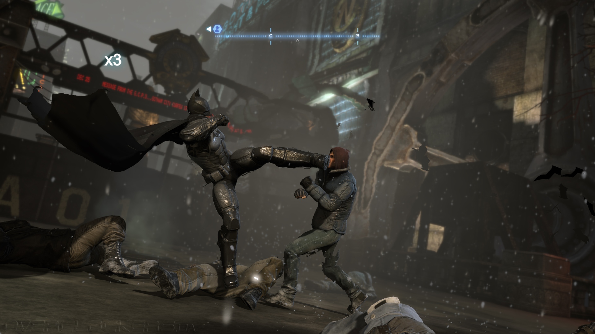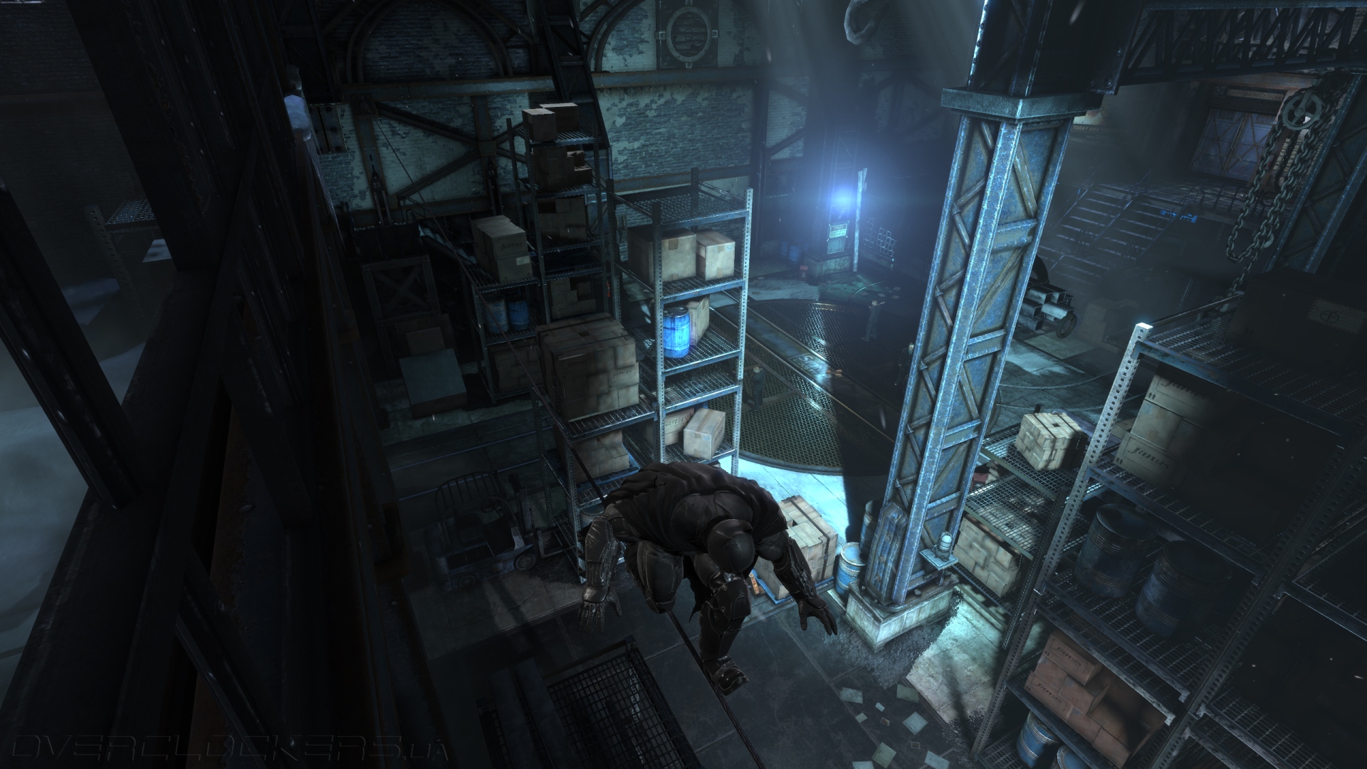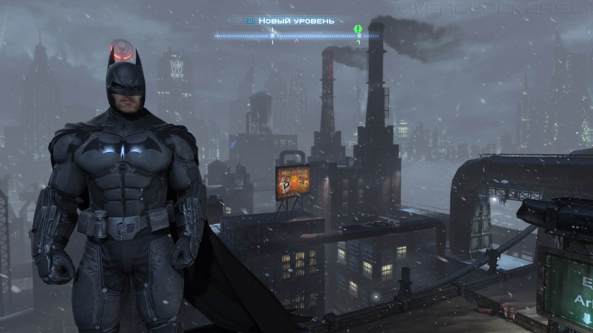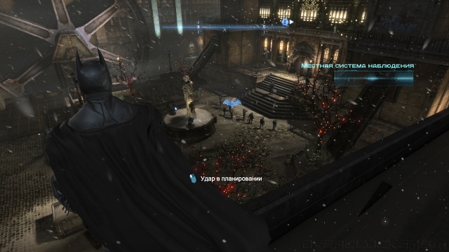 Прошлая игра серии Batman обзавелась поддержкой DirectX 11. В частности, довольно активно использовалась тесселяция. Мокрая брусчатка с рельефной грязью и талым снегом смотрелись великолепно. Arkham Origins по части отображения открытого мира немного сдал позиции. Брусчатка и стены не столь выпуклые, хотя хватает и рельефных поверхностей — зависит от локации. Город частично спрятан под снегом, который приятно искрится на свету. Но кое-где снежный покров выглядит невзрачно.
