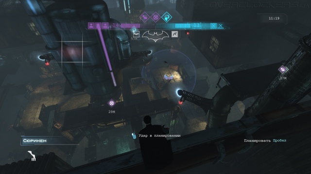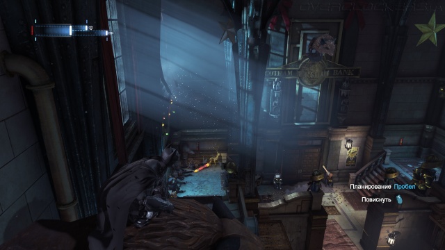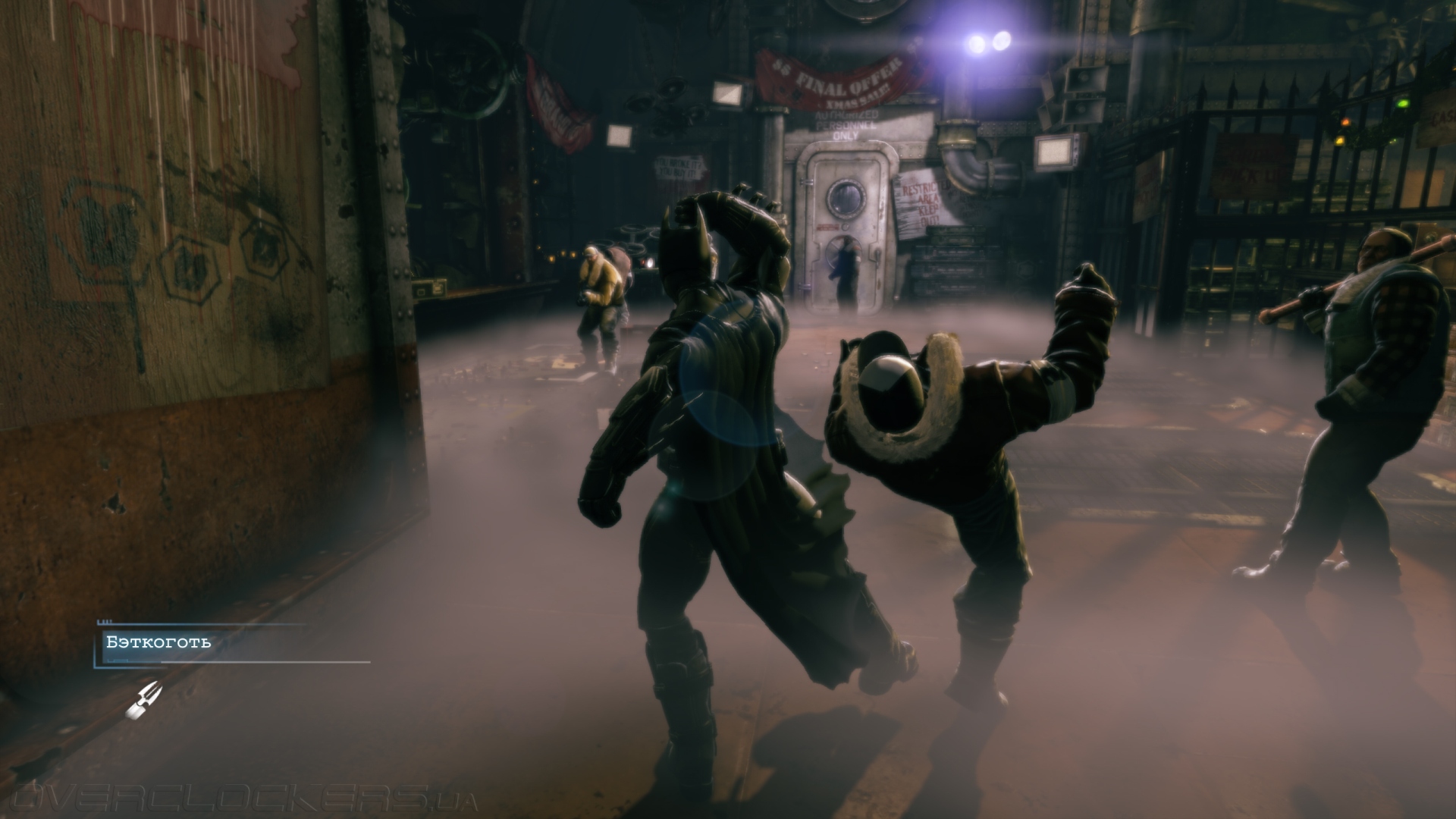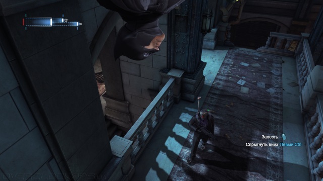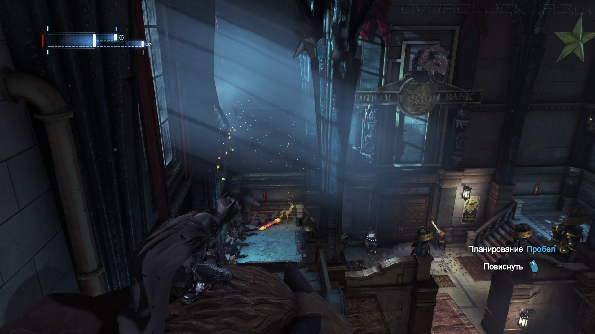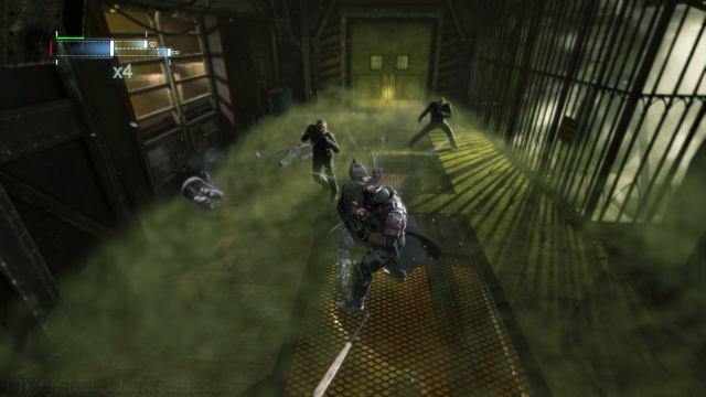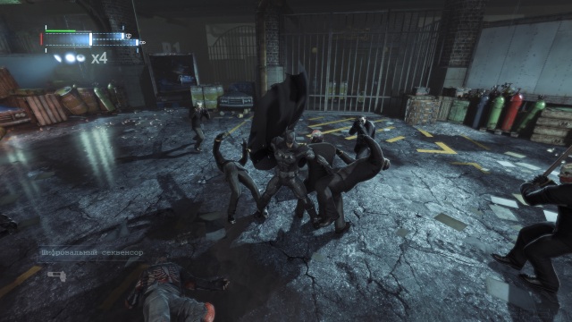 Самое увлекательное в Batman — возможность стать хищником, который охотится на преступников. Не всегда игра заставляет сходиться к кулачном бою на тесных аренах. Иногда нас выпускают в просторные залы с кучей лазеек, где можно устроить тихую охоту. Никто не мешает и тут открыто броситься на врагов, выбивать автоматы, швырять дымовые гранаты или бэтаранги. Но намного интереснее выжидать момент на какой-то высокой точке, чтобы схватить и подвесить бандита. Или забравшись в вентиляцию, подкараулить его у решетки и оглушить мощным ударом. После этого быстро взлететь при помощи цепкого механизма с когтем под потолок и любоваться, как встревоженные враги бегают внизу в поисках нападавшего. Где-то можно устраивать внезапные нападения, подкарауливая за тонкой стеной или за углом. Можно применять взрывчатый гель, который оглушит бедолагу и привлечет всеобщее внимание к нужной зоне.