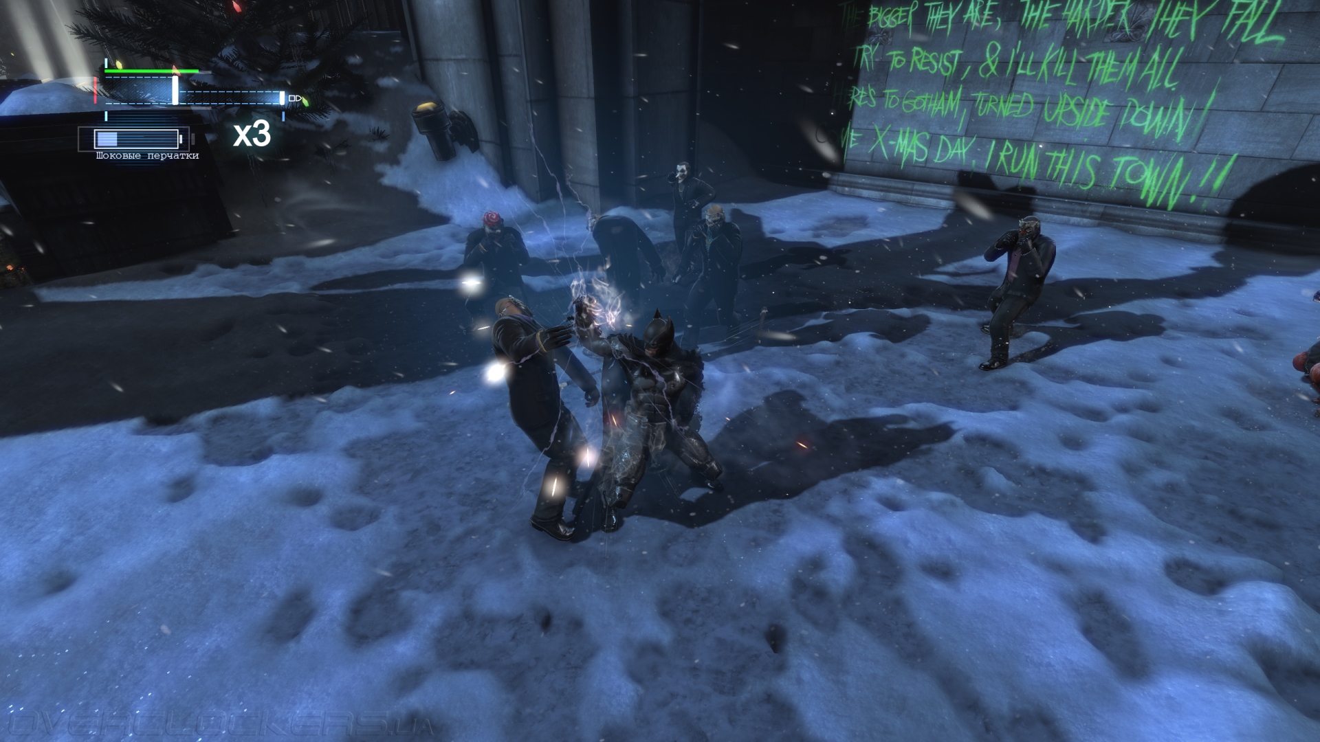 Есть у игры один минус, который рушит общую картину представления мира. Если в прошлых частях было какое-то объяснение отсутствию рядовых жителей, то в Arkham Origins действие развивается в обычном городе до момента его изоляции. Но все равно на улицах полно головорезов, и нет ни одного прохожего. Да и общая предпраздничная атмосфера не особо чувствуется. Снежок, гирлянды — это хорошо, но от чувства, что ты играешь в слегка видоизмененный Arkham City, не избавиться.