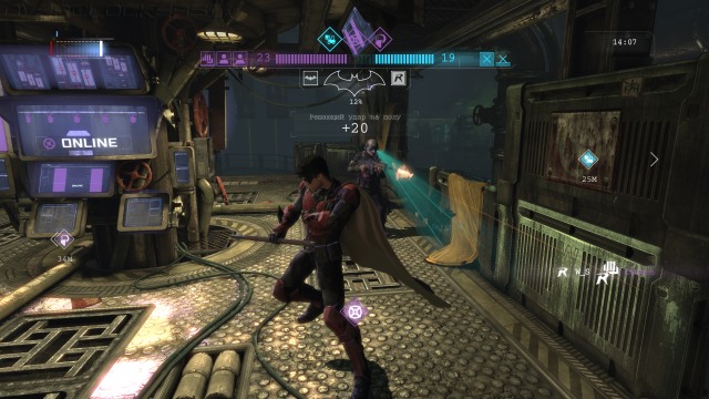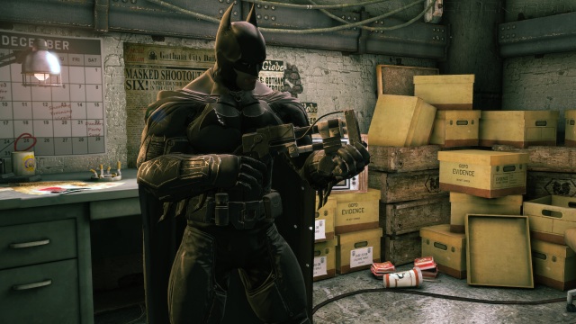 Исследование мира и преодоление препятствий требует использования разных приспособлений. Набор гаджетов изменился слабо, а некоторые новинки не сильно отличаются от старых устройств. Так, клеевая граната заменяет ледяную из Arkham City, позволяя блокировать горячие потоки пара и создавать плот на водной поверхности. Доступный для исследования город стал еще больше, побочных заданий в нем полно, но ничего оригинального они не предлагают. Это поиск тайников, решение задачек по добыче блоков данных, нейтрализация ящиков с токсином или оружием. Все то же самое, чем нам предлагали заниматься и ранее. Более интересный режим расследований предлагает изучение мест преступления и сканирование улик с последующей нейтрализацией подозреваемых. Некоторые преступления образуют цепочку событий, приводящих к крупному злодею, с которым нас ожидает схватка. Некоторые из таких стычек похлеще сюжетных битв с боссами. Но это тоже не из-за сложности игровой механики, а из-за постоянно прибывающего подкрепления или других условностей. Выполнение всех побочных заданий займет намного больше времени, чем прохождение сюжетной линии.