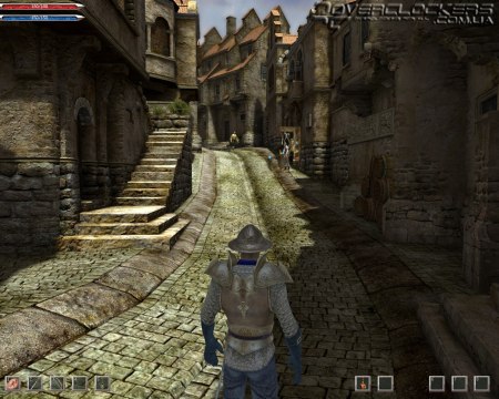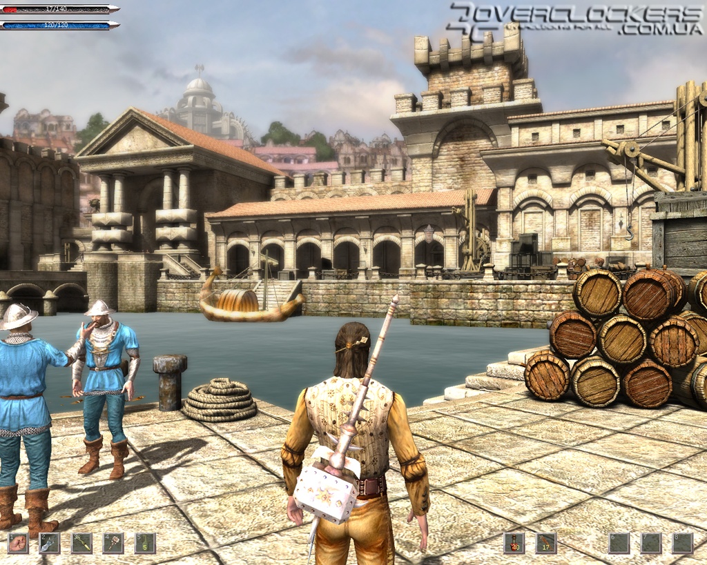 Про бесшовный мир и упоминать не стоит, поскольку его тут просто нет. Да и местные локации разбиты на отдельные куски, которые порою соединяются самым невероятным образом. Столица, которая состоит аж трех маленьких районов (уже смешно) является поистине местом пространственных аномалий, ведь здесь двери являются настоящими «дырами в пространстве и времени». Две соседние двери в порту выводят не в соседние районы, а в последовательно идущие один за одним. Выходит, что, шагнув в одну дверь, вы пролетаете сквозь центральную площадь и появляетесь в жилом районе. Точно так же и обратный путь с площади и жилого района, которые надо пробежать минут пять, выведут вас к двум соседним дверям в порту. А еще чудеса ненормального пространства можно лицезреть в доме, который получит Орвин. Изнутри две двери выходят на одну сторону вроде бы, а снаружи они оказываются на разных стенах под углом в 90 градусов. Чудеса, да и только! И это при том, что все здания, которые посетит герой, можно легко пересчитать по пальцам одной руки, а районов города, как было сказано выше, лишь три. Уже чувствуется с каким вниманием разработчики отнеслись к созданию игрового мира.