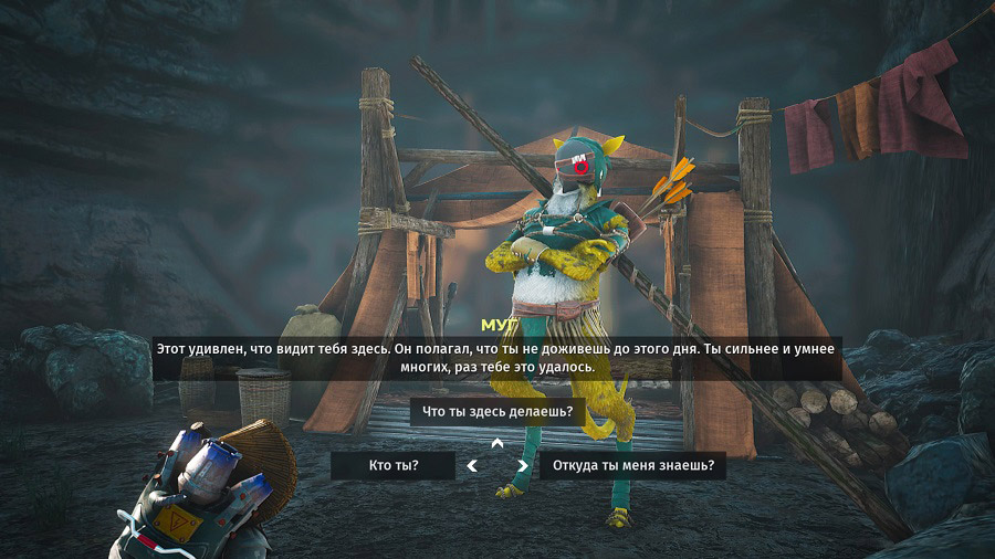 Так вот, голос рассказчика не переводит местный язык одновременно с речью NPC. Ее всегда приходится выслушивать полностью и только потом идет перевод сказанного, и предлагаются варианты ответов. Такой способ растягивает время игры и каждого диалога в отдельности, а также делает местные разговоры тупыми и утомительными.