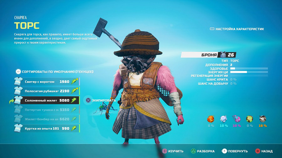 Найденные вещи можно надеть на героя или разобрать, чтобы сделать новые предметы или улучшить старые. Создавать дают экипировку и оружие, но меню настолько переусложненное и неинформативное, что даже после обучения я раза три тщетно пытался разобраться с крафтом, а потом долго возился с другими разделами.