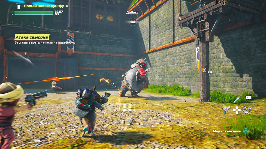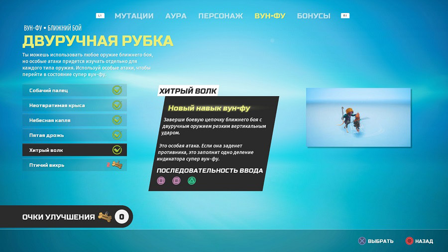 Помимо этого персонажу стоит прокачивать боевые навыки, а они тут сразу трех видов и применяются в бою одновременно. По крайней мере, создатели так задумали. Есть вун-фу — местный вариант кунг-фу, то есть атаки ближнего боя. Есть дальний бой, представленный различным оружием, и есть мутировавшая магия. Здесь персонаж бросается молниями, слизью, вонючими испарениями, огненными шарами и так далее. Все это тоже надо развивать, а еще вкачивать пассивные навыки героя.