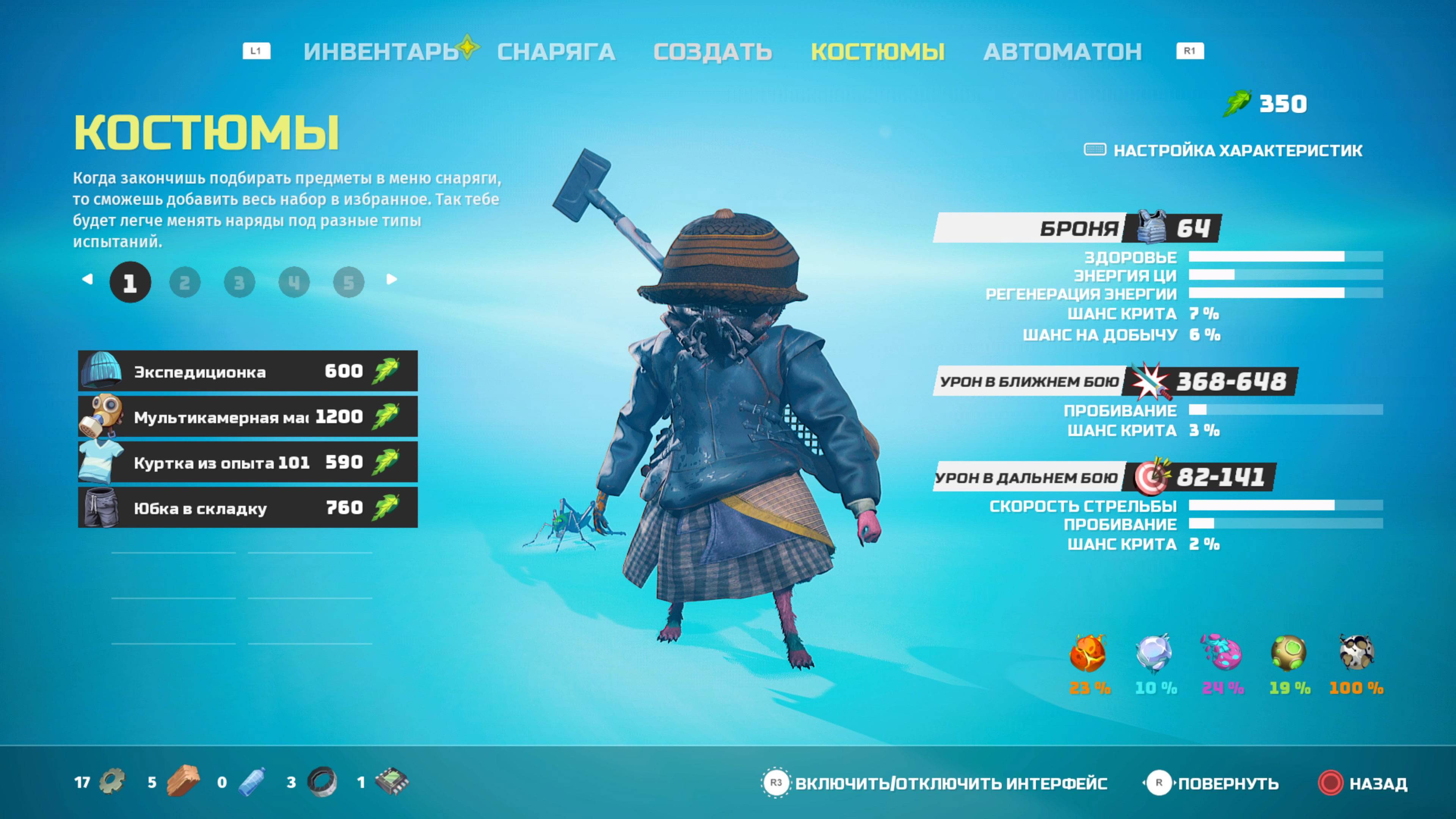 Все многочисленные элементы игры, включая очки навыков, очки мутаций, пассивные бонусы, костюмы героя и его спутника, ездовые животные, оружие и броня, крафт и прочее, и прочее, собраны в одно большое и, пожалуй, самое неудобное меню из всех, что мне попадались за последние годы.
