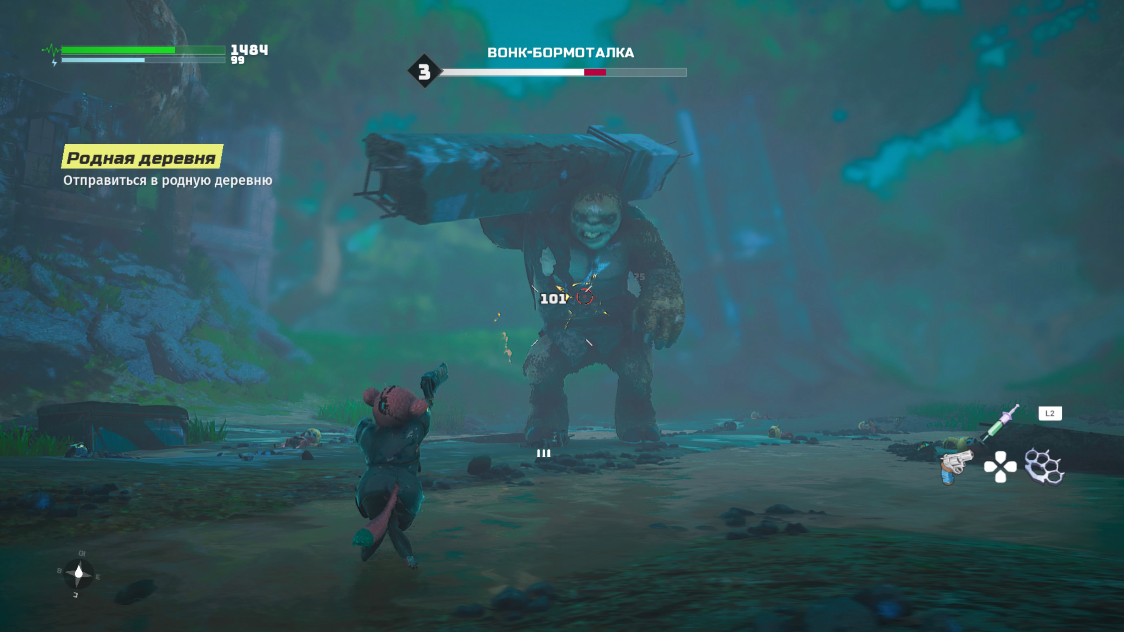 Боевка в Biomutant выглядит эффектно и круто, но совсем так не ощущается. Удары не чувствуются, парирования пропускаешь через раз, потому что атаки врагов почти никак не читаемы, анимация героя и противников корявая, персонаж постоянно проваливается в крупных монстров и особенно в сюжетных боссов.