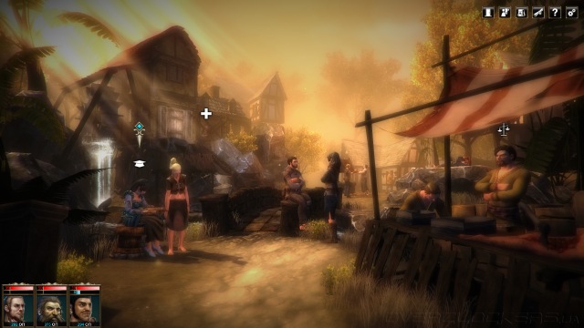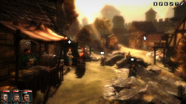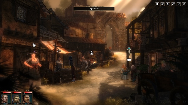Основная проблема повествовательной части Blackguards в упрощенной подаче сюжета, который развивается исключительно в диалогах между боями. Сами же диалоги представлены в виде слабоанимированных фигур на фоне простеньких задников, кокетливо скрывающих бедное убранство декораций за туманом или ночной мглой. Даже по прибытии в город нас ожидает один экран с кучкой торговцев и лекарем. А если город очень большой, то будет аж парочка городских планов, между которыми можно переключаться.