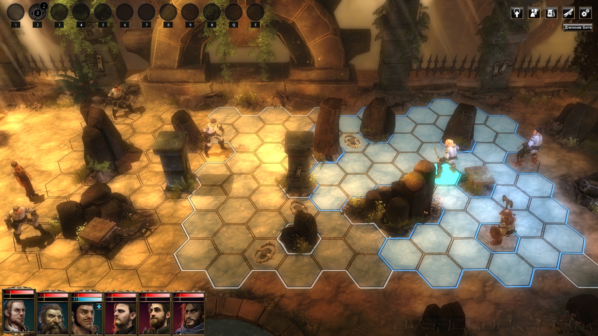 Залог успешного проведения боя в слаженной командной работе, как и во всех играх такого плана с несколькими персонажами. Бойцы ближнего боя отвлекают на себя пехоту, стрелки прикрывают, а маги работают на подхвате, в защите и атаке, занимаются лечением. Каждый действует в рамках доступных ему очков действий, которые определяют радиус, на который может передвигаться персонаж. Среди иных факторов, съедающих очки действия — смена оружия, использование зелий и т.п.