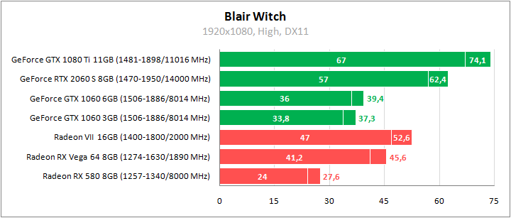 А вот системные требования неоправданно высокие. Blair Witch серьезно просаживает fps даже на топовых видеокартах, и по максимуму прогревает GPU. В такой ситуации не обойтись без небольшого сравнения видеокарт. Посмотрим на реальную производительность разных моделей GeForce и Radeon.