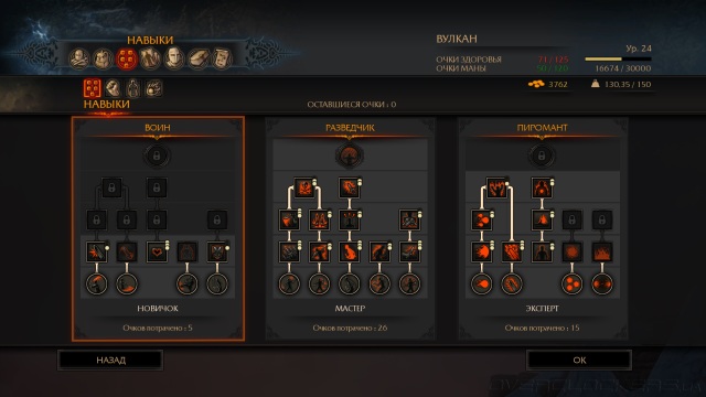 Система развития персонажа кроме трех озвученных веток умений имеет еще несколько списков дополнительных навыков вроде повышения эффективности зелий, уменьшения затрат на производство боеприпасов, увеличение урона от ловушек и многое другое. За каждый новый уровень нам выдают отдельно очки для прокачки основных веток умений и очки для покупки дополнительных скиллов.