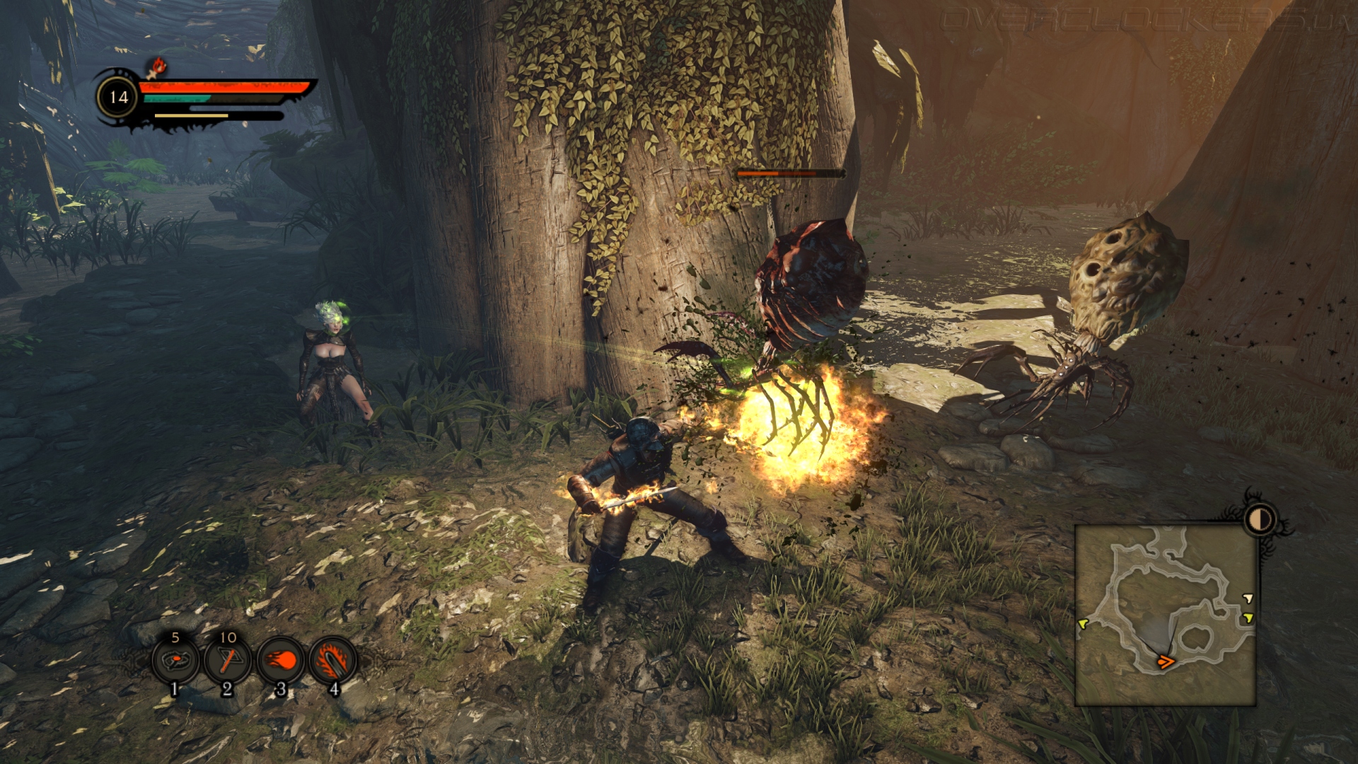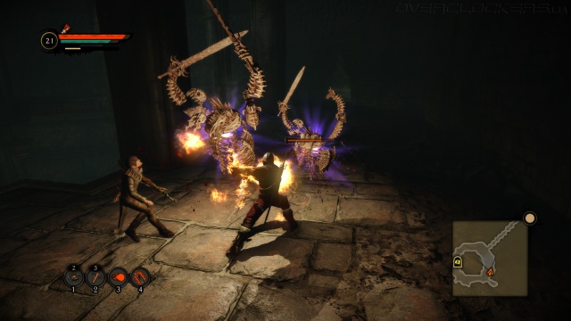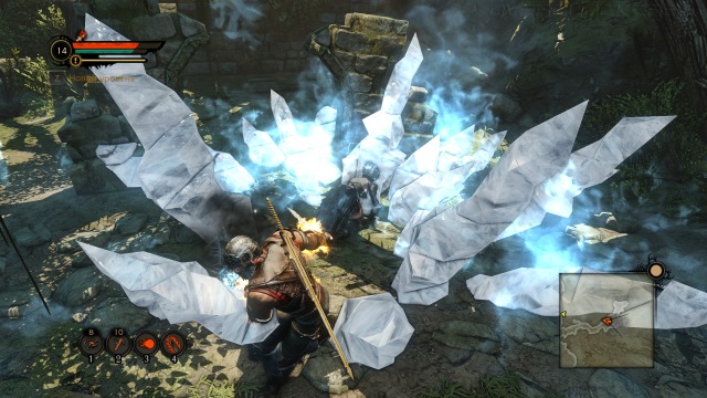 При нормальном уровне сложности и выше придется использовать весь спектр умений — от магии до ловушек. Простые схватки против одного-двух врагов оборачиваются тяжелым противостоянием при более крупных скоплениях противника. Особенно быстро обрывается жизнь героя при наложении негативных эффектов вроде отравления. Трудности в бою могут возникнуть и по причине узких локаций, где не может развернуться камера. Если вас зажали в угол и камера заняла неудобную позицию, то трудно уловить момент атаки и отпрыгнуть от меча или щупальца нападающего. Вообще, сильные противники побеждаются в основном за счет контратак. Но угадать верный момент для уклонения бывает трудно по причине непонятной анимации негуманоидных форм жизни. Если предупредить атаку скелета по замаху меча просто, то к действиям летающих каракатиц и прочих непонятных созданий придется привыкать.