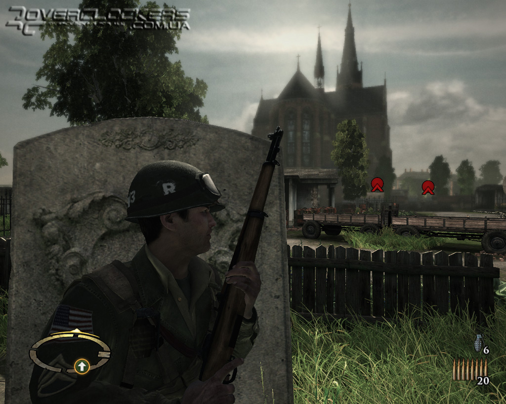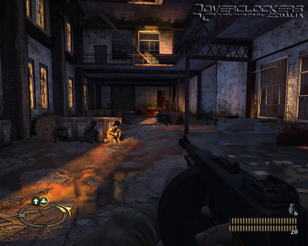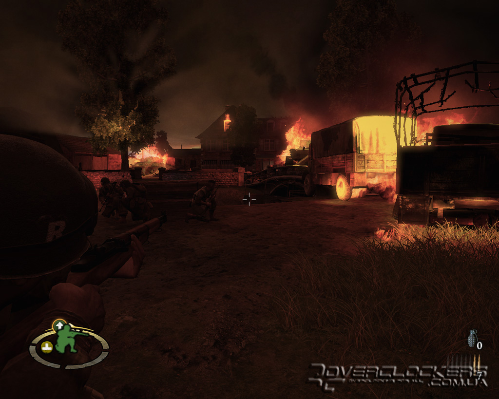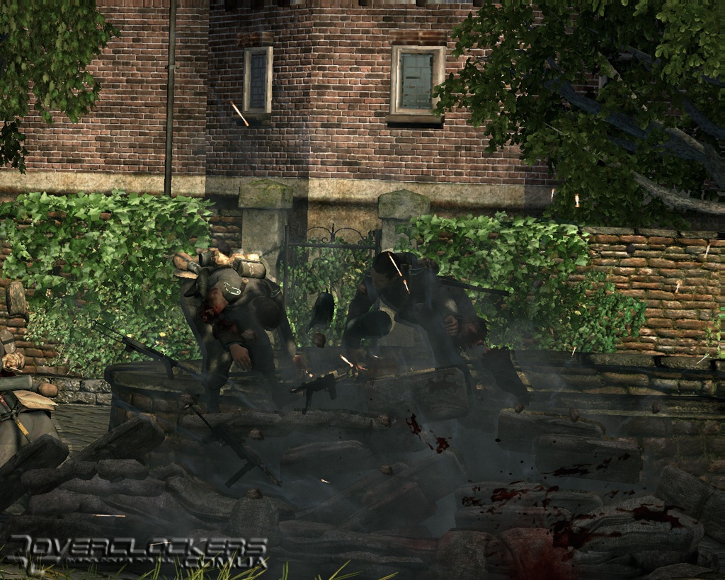 Компьютерные товарищи, умирая, все так же восстают из мертвых на ближайшем чекпойнте. А ведь помнится, были обещания про необходимость лечения бойцов, а раненых необходимо было оттаскивать с линии огня. Еще одно обещание про тотальную разрушаемость нашло довольно ограниченную реализацию. Помните пафосные ролики, когда взвод захватывал пушку, разворачивал ее и пытался уничтожить танк, причем все это сопровождалось разлетающимися на кирпичики стенами? К сожалению, ничего подобного по зрелищности в игре нет. Разрушаются только определенные укрытия из мешков, бочек или покрышек. Деревянный забор простреливается и разваливается, но вот все остальное, стены и здания, абсолютно безразличны к внешнему воздействию. От удачного попадания гранатой разлетаются на ошметки не только укрытия, но и тела немецких солдат. Игру не назвать жестокой, крови практически нет, однако отлетающие конечности присутствуют.