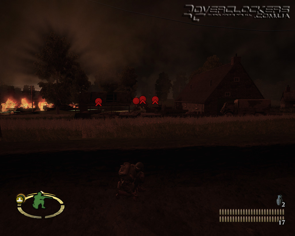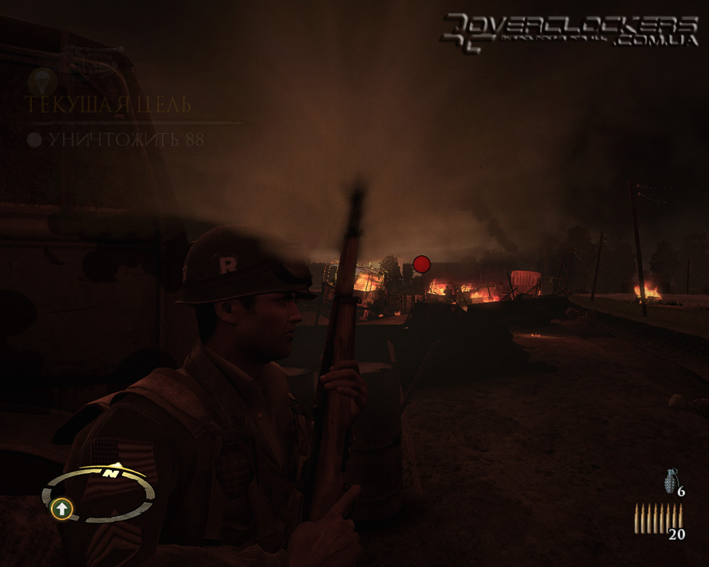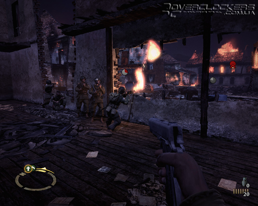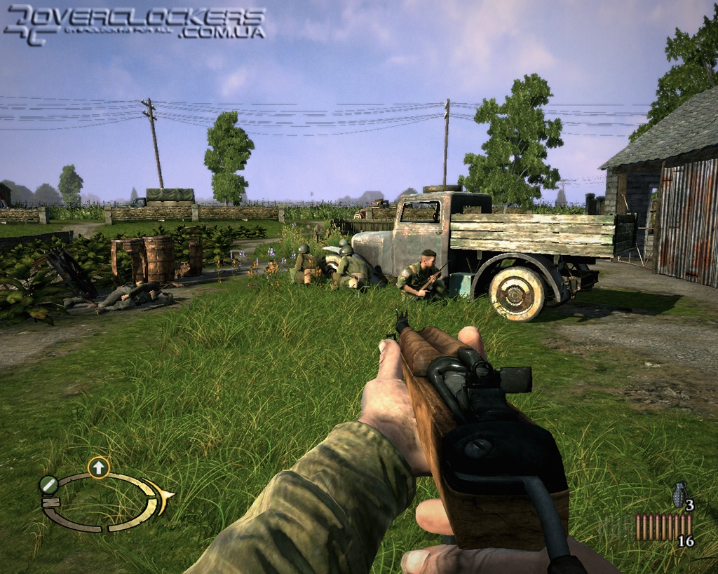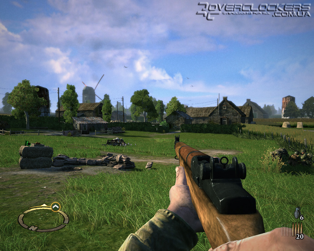 Компьютерные товарищи, умирая, все так же восстают из мертвых на ближайшем чекпойнте. А ведь помнится, были обещания про необходимость лечения бойцов, а раненых необходимо было оттаскивать с линии огня. Еще одно обещание про тотальную разрушаемость нашло довольно ограниченную реализацию. Помните пафосные ролики, когда взвод захватывал пушку, разворачивал ее и пытался уничтожить танк, причем все это сопровождалось разлетающимися на кирпичики стенами? К сожалению, ничего подобного по зрелищности в игре нет. Разрушаются только определенные укрытия из мешков, бочек или покрышек. Деревянный забор простреливается и разваливается, но вот все остальное, стены и здания, абсолютно безразличны к внешнему воздействию. От удачного попадания гранатой разлетаются на ошметки не только укрытия, но и тела немецких солдат. Игру не назвать жестокой, крови практически нет, однако отлетающие конечности присутствуют.