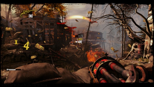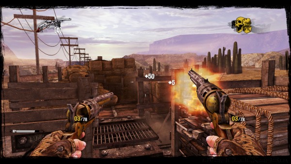 Нельзя не увидеть некую схожесть с Bulletstorm — чем необычнее убийство, тем больше очков. Но на самом деле в Gunslinger меньше возможностей и окружение (за исключением взрывающихся бочек) роль вспомогательного элемента не выполняет. Хотя все равно играется очень бодро, потому как игра постоянно предлагает какие-то новые ситуации — зачистка лесопилки, разминирование железнодорожного моста, спасение поезда от налетчиков.