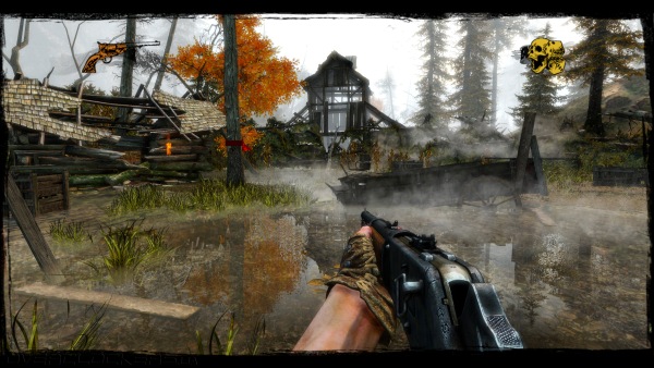 Очень забавно и необычно. Приятно, что и перегибов с таким художественным приемом нет. Игра не превращается в психоделическое путешествие среди обрывков воспоминаний. Но все же общая стилистика игры уже не такая серьезная, как ранее. Gunslinger более разнузданный и бесшабашный. И это не только из-за сюжета, который предлагает набор разнотипных флешбеков вместо единого рассказа. Изменился визуальный стиль игры. Появились очки опыта и различные надписи над убитыми врагами, которые вылетают в сопровождении бурных фонтанов крови. Основной мотивационный акцент игрового процесса сменился на стрельбу ради стрельбы. Игрок сам стремится стрелять более зрелищно и точно, чтобы набить больше баллов.