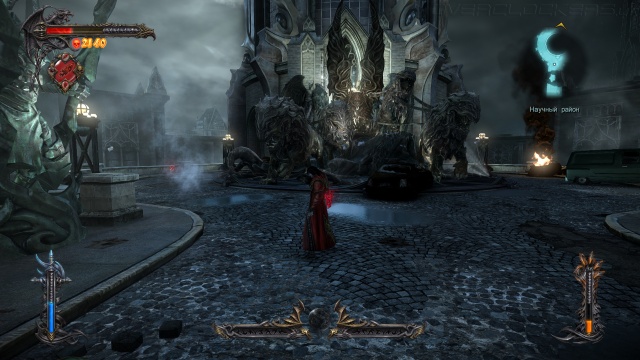В итоге игра получается весьма разнообразной в плане игровых возможностей, но тесноватой по общему восприятию игрового мира. Крайне мало локаций с хоть каким-то подобием открытых зон. Зато полно лабораторных залов, замковых коридоров и тесных улочек с единообразным мрачным антуражем. И если касательно замковой архитектуры и городских панорам в лучах луны можно говорить о выверенном готическом стиле, то лаборатории и индустриальные зоны невзрачные. Отличная идея с контрастом между эпохами не получила должного визуального развития.
