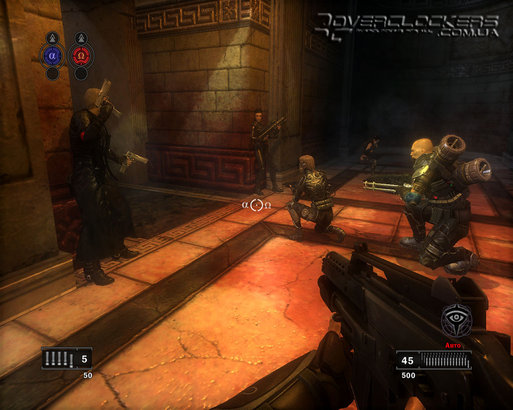 Римские центурионы укрываются за высоким щитом, и приходится находить способ обойти их сбоку. В условиях тесноватых уровней это сделать тяжело, но тут помогает разделение команды, тогда можно взять врага в кольцо.