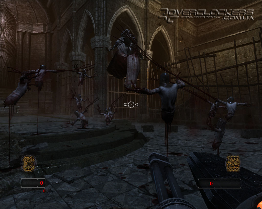 Общая гнетущая атмосфера происходящих событий подчеркивается серыми мрачными пейзажами и сценами человеческой безумной жестокости. Величественные архитектурные строения, стены в крови и непонятной слизи, темницы с останками, трупы с вывороченными кишками, распятые полуживые не то люди, не то очередные демонические создания – вокруг нас абсурдный гротескный мир, в котором материализовались самые ужасные фантазии человеческого разума. Мрачная сюрреалистичная атмосфера, в которую погружаешься с головой.