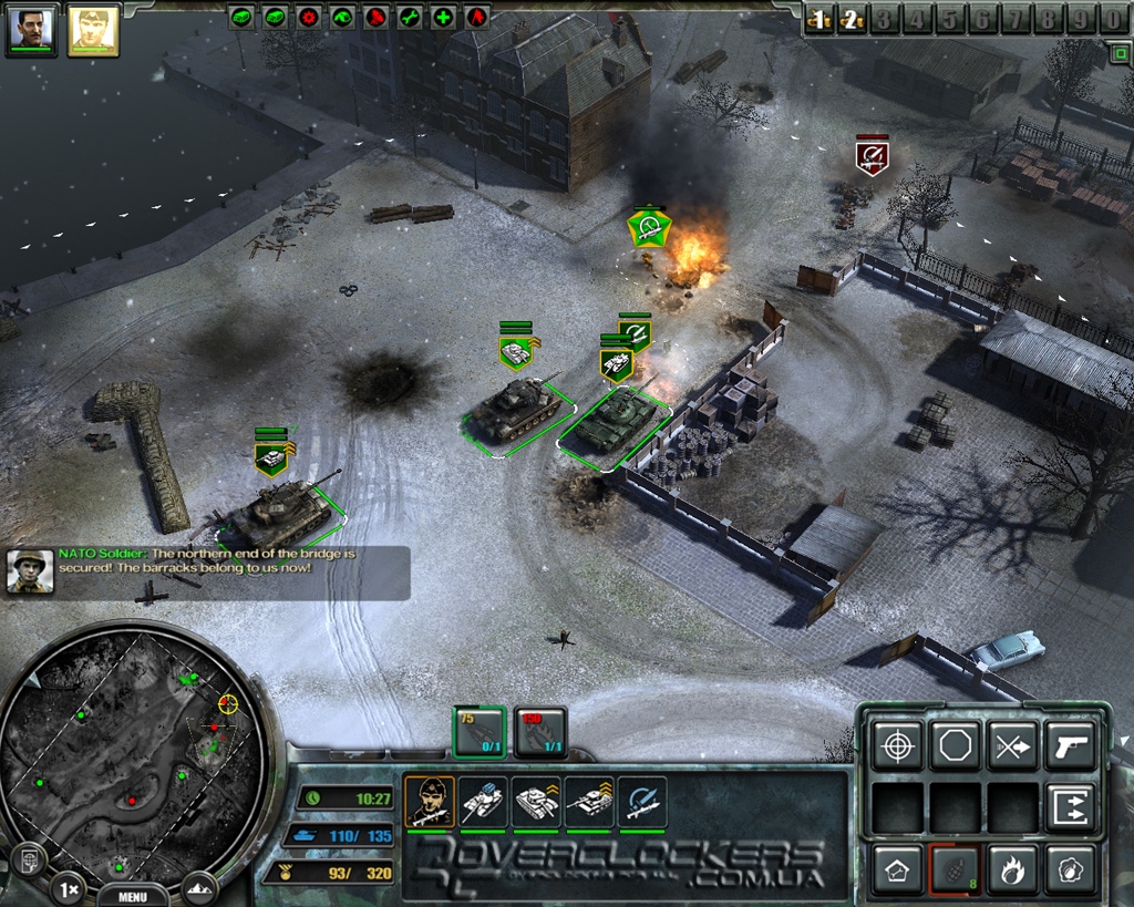 Похоже складывается и с пехотой, для их поддержки всегда надо иметь отряд медиков, иначе половину своей армии вы растеряете при первой же крупной стычке. Баланс между подразделениями бесхитростный, каждый юнит специализируется на каком-то одном противнике. Например, пулеметчики эффективны лишь против пехоты, а вот отряд с базуками способен уже и против броневика или танка выстоять, но в стычке с те ми же пулеметчиками они слягут быстро. Есть у бойцов и некоторые дополнительные возможности: кто-то может периодически использовать боевые гранаты против техники врага или дымовые для прикрытия своего наступления. Пехотинцы могут использовать прикрытия или занимать огневые позиции в зданиях, как в Company of Heroes.