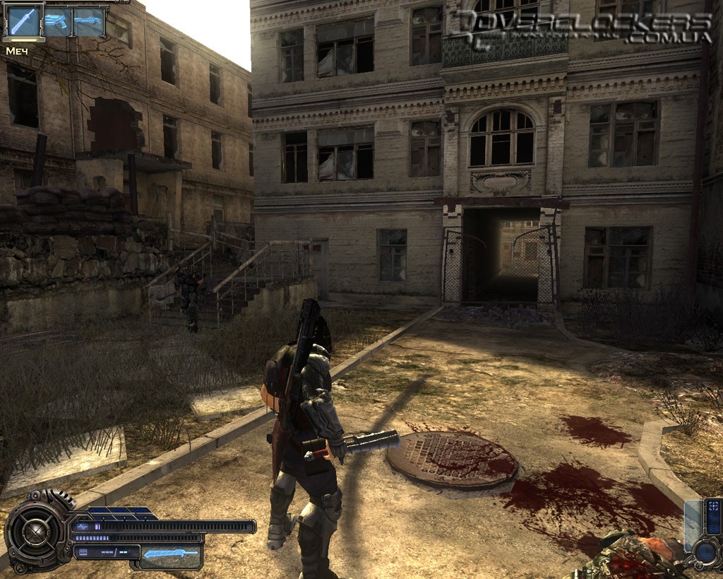 Потом нам даже приходится некоторое время сопровождать Елену. Это, кстати, одна из особенностей игры, которая часто подкидывает нам напарника, за которым надо следить и действовать с ним в паре. Елена хоть и может постоять сама за себя, но ее пистолет не так эффективен как наш меч. Также несколько локаций мы пробежимся на пару с другим товарищем - Дырявым, который орудует неким непонятным оружием в виде двух раскручивающихся шариков (наверное усовершенствованный «йо-йо»). Неприятным моментом такого совместного прохождения является присутствие повреждений дружественным субъектам. С нашими широкими размашистыми ударами мечом можно отправить на то свет напарника быстрее, чем это сделают противники. Это заставляет быть предельно осторожным и точным.