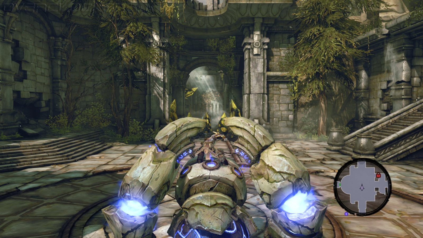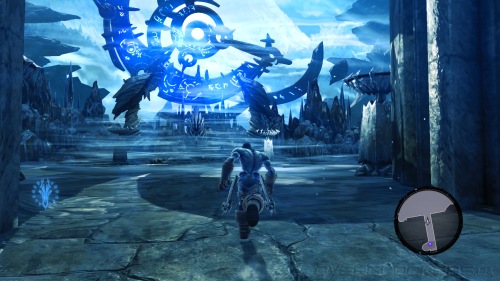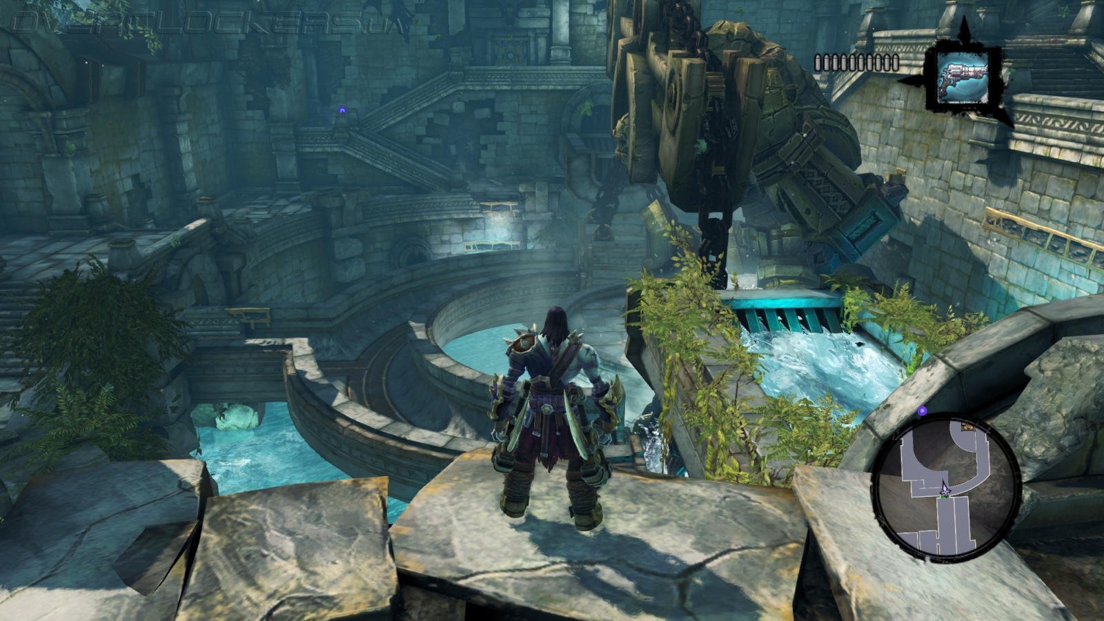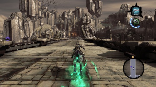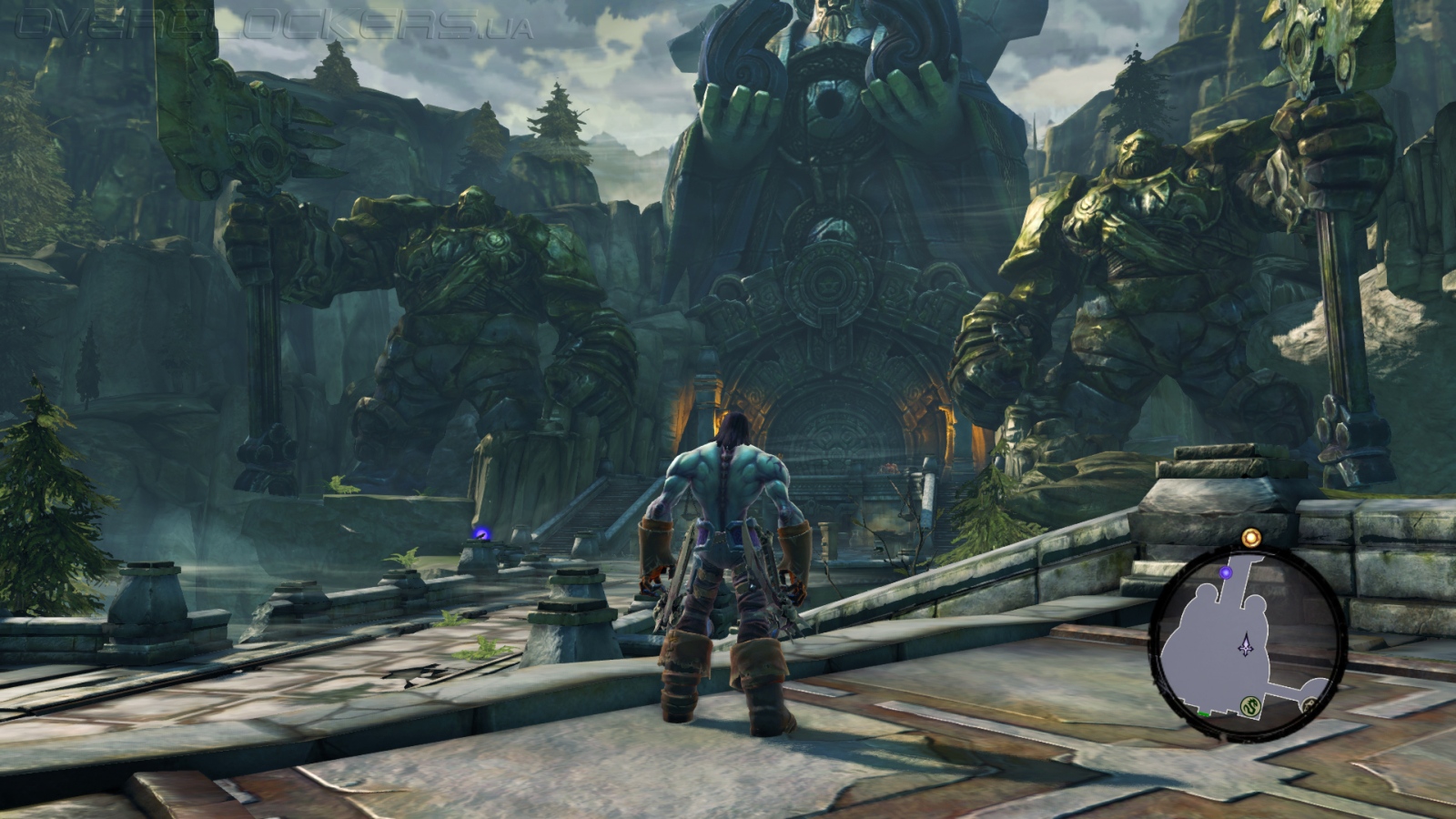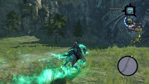 Впрочем, в простого мальчика на побегушках Смерть не превращается. В игре нет обилия бессмысленной беготни. Нужно быть более внимательным при прохождении основных заданий и не обходить стороной все закоулки, тогда найти все необходимые предметы для второстепенных квестов не составит труда. В каждом мире локации открываются постепенно, по мере развития сюжета. Первый мир, Кузнечные земли, охвачен Порчей, которая превращает обитателей в агрессивных монстров и блокирует многие проходы. Есть и труднодоступные места, которые можно преодолеть лишь по мере развития новых навыков у героя. Ну и внимательность со смекалкой при исследовании доступных территорий тоже играют важную роль. Есть в игре и поиск особых предметов в тайных местах. Это занятие для самых тщательных исследователей. Бывают и вовсе неожиданные сюрпризы, когда забредя в какое-то тайное место, можно натолкнуться на огромного монстра, но победив его, получить хорошее оружие. В целом мир Darksiders 2 очень насыщен, но не перегружен. Передвижение по локациям не отнимает много времени благодаря наличию быстрого скакуна и возможности моментального перемещения в уже открытые области на карте.