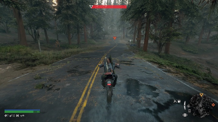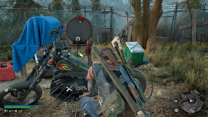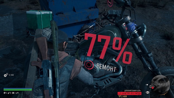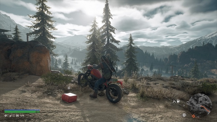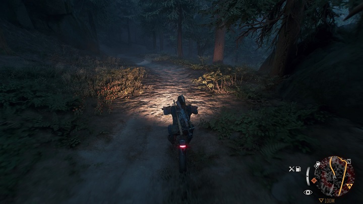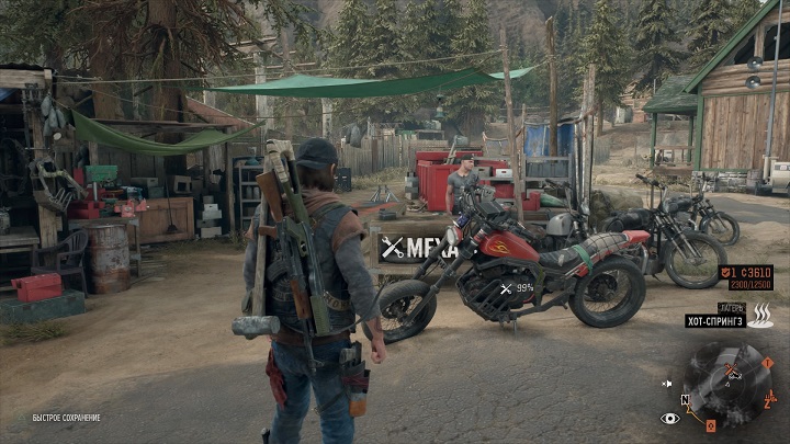 Еще один интересный элемент Days Gone — мотоцикл. Мне нравится сесть на байк и проехаться через всю карту, остановившись на заправке, чтобы наполнить бак и подкрутить пару гаек. Есть в этом что-то успокаивающее и медитативное. Но понятно, что подобное привлекает далеко не всех, а кто-то отнесет долгие поездки к минусам, но в любом случае, есть возможность быстрого перемещения между лагерями. И все же телепорты лишат вас большой части геймплея, ведь мотоциклом интересно управлять, он эффектно капризничает на мокрой дороге или в болоте, а также привередлив на поворотах. И это делает езду еще более реалистичной, а часто просто веселой.