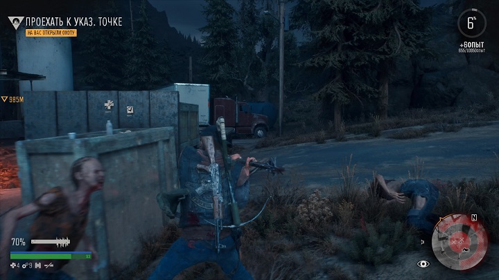 Что же касается самого геймплея и боевой системы, то в «Жизнь после» умело скрестили проверенные элементы других игр. Здесь сразу заметны копирования с Far Cry, Mad Max, The Witcher 3, R2D2, Dying Light и прочих. Для такого масштабного проекта у Bend Studio явно не хватило опыта и фантазии, поэтому они взяли отовсюду по чуть-чуть: классическая стрельба от третьего лица с перекатами и замедлением времени, стелс и тихие убийства, ближний бой с ограниченной стаминой, сбор хлама для крафта, охотничье зрение, поиск следов и редких предметов, сурвайвал элементы с ломающимся оружием и заканчивающемся бензином в мотоцикле, система доверия в лагерях и новомодный живой мир-песочница.
