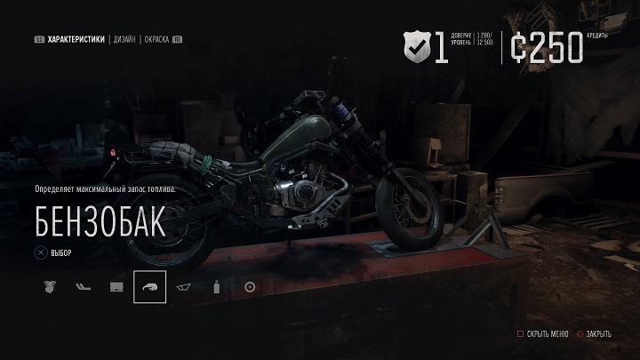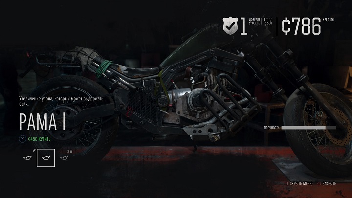 Байк главного героя можно и нужно улучшать, заправлять и ремонтировать. Разработчики добавили увлекательную кастомизацию железного коня, где на него разрешают примерить новые обвесы, фары, колеса, краску, наклейки, трубы и прочее. Со временем мотоцикл лучше переносит удары и столкновения, жрет меньше бензина (но все равно заправляться придется часто) и уже не рычит во время езды, что не так привлекает фриков или дорожных бандитов.