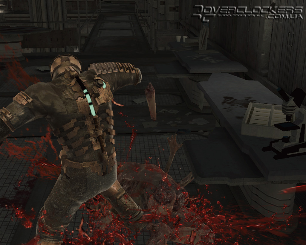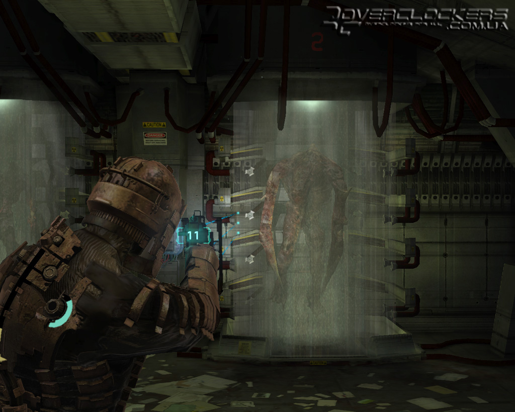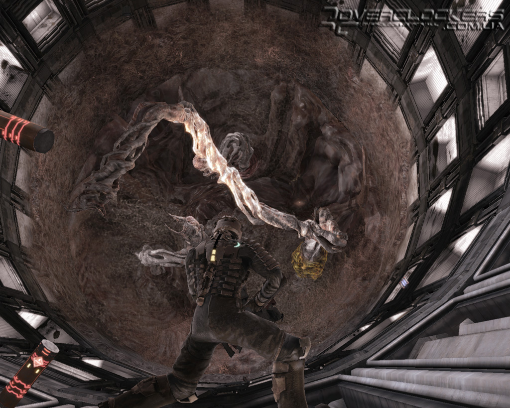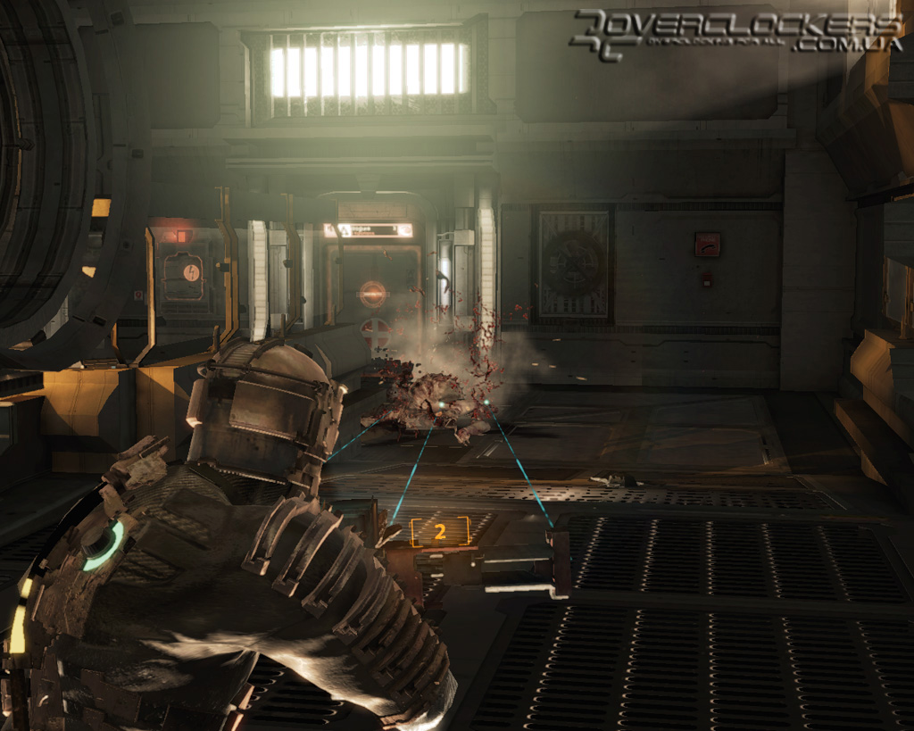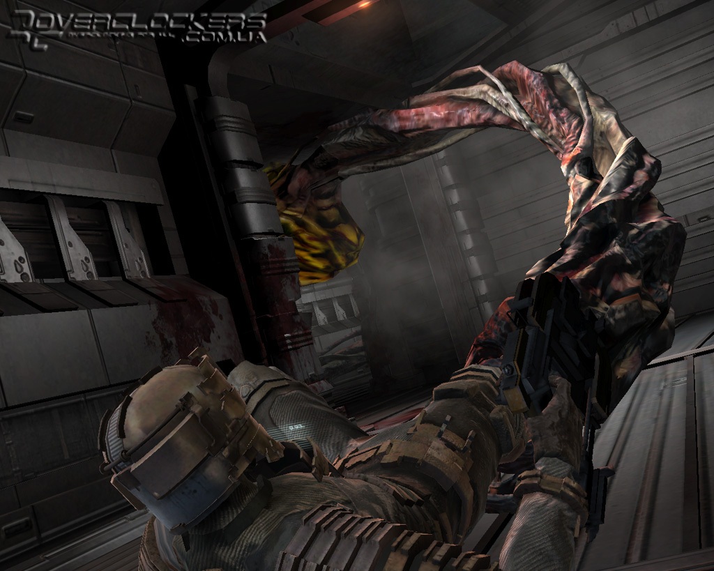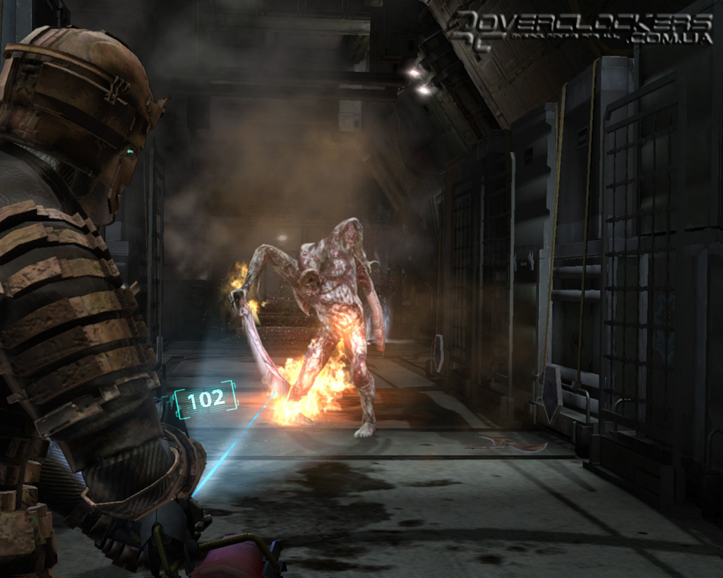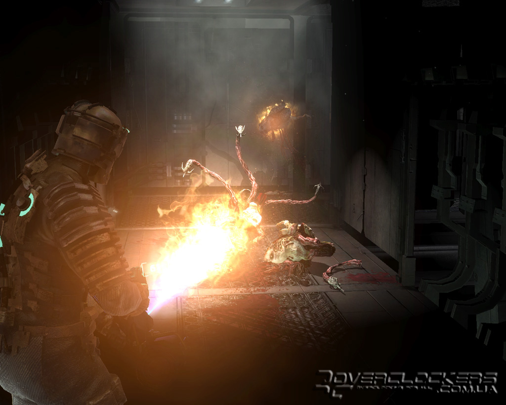 Огонь и пыль смотрятся отлично. Просто великолепно реализован эффект наполнения камеры воздухом или его высасывание в открытое пространство. Но за всем этим те самые плоские стены. Кое-где, правда, это никак в глаза не бросается благодаря удачной работе дизайнеров, наполнивших уровни различными элементами и источникам освещения. Но и простых безжизненных коридоров хватает, и тогда визуально игра откровенно разочаровывает. Даже у монстров маловато полигонов. Высокая детализация лишь у главного героя, а некроморфы (особенно при ближней схватке) выглядят намного скромнее.