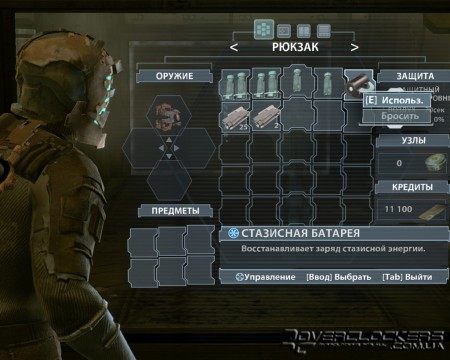 При обилии аптечек и прочих элементов, с которыми приходится взаимодействовать, меню инвентаря выполнено неудобно. Сама задумка, когда все игровые данные проектируются в виде голограммы перед Айзеком, отлична, но навигация по этим меню долга. В бою никак не выполнить быстрое восполнение стазиз-модуля, хорошо хоть аптечка назначена на отдельную клавишу.