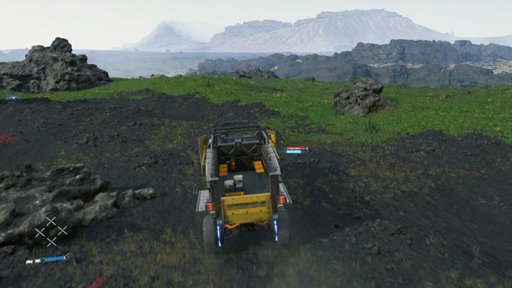 По дороге к клиенту нагруженный доставками главный герой может легко упасть, ведь мир Death Stranding неприветлив, полон камней, гор, скал, обрывов, глубоких рек, уступов и прочих неприятных для путешествия преград. Игроки уже сравнивают здешний климат и пейзаж с Исландией — такой же суровый, пустынный, но величественно красивый.