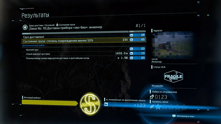 Лайки — местная универсальная валюта. Точнее они ее заменили и упростили. В Death Stranding нет очков опыта, золота, денег и прочей лабуды. Ничего нельзя продать или купить, все можно сделать самому, создавая в мастерских или брать у тех же других игроков, которые делятся ими безвозмездно. Воспользовался чужим трициклом — поставь лайк. Кто-то прошел по разведанному тобой простому пути — держи лайк. Создал полезный гаджет и положил его в общее хранилище — лови еще лайки. Казалось бы, банальная, и в теории глупая, система на деле работает лучше других виртуальных вознаграждений. Ведь и в жизни мы часто радуемся обычным лайкам в Facebook или Instagram, так почему же не получить еще одну порцию радости от этого же в игре. В такие моменты считаешь, что Кодзима действительно гений.