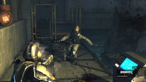 С игровым процессом дела обстоят лучше, хотя и тут есть большая проблема. Игра ориентирована на консоли и геймплей построен на использовании укрытий. Вполне типично для современных шутеров от третьего лица. Но удобство передвижения сильно хромает. Резко бегать герою не по силам. Но это и понятно. Он одет в бронированный костюмчик, напоминающий облачение Айзека Кларка — в таком не сильно разгонишься. Единственный способ увернуться от пули на открытом месте — кувыркаться. Резво прыгать от укрытия к укрытию Пирс тоже не умеет. Надо подбегать к каждому и нажимать соответствующую клавишу. В режиме «прилипания» к стене попасть по зашедшему с фланга противнику почти нереально. В общем, управления намного хуже, чем у большинства игр со схожей игровой механикой.
