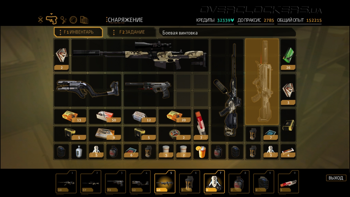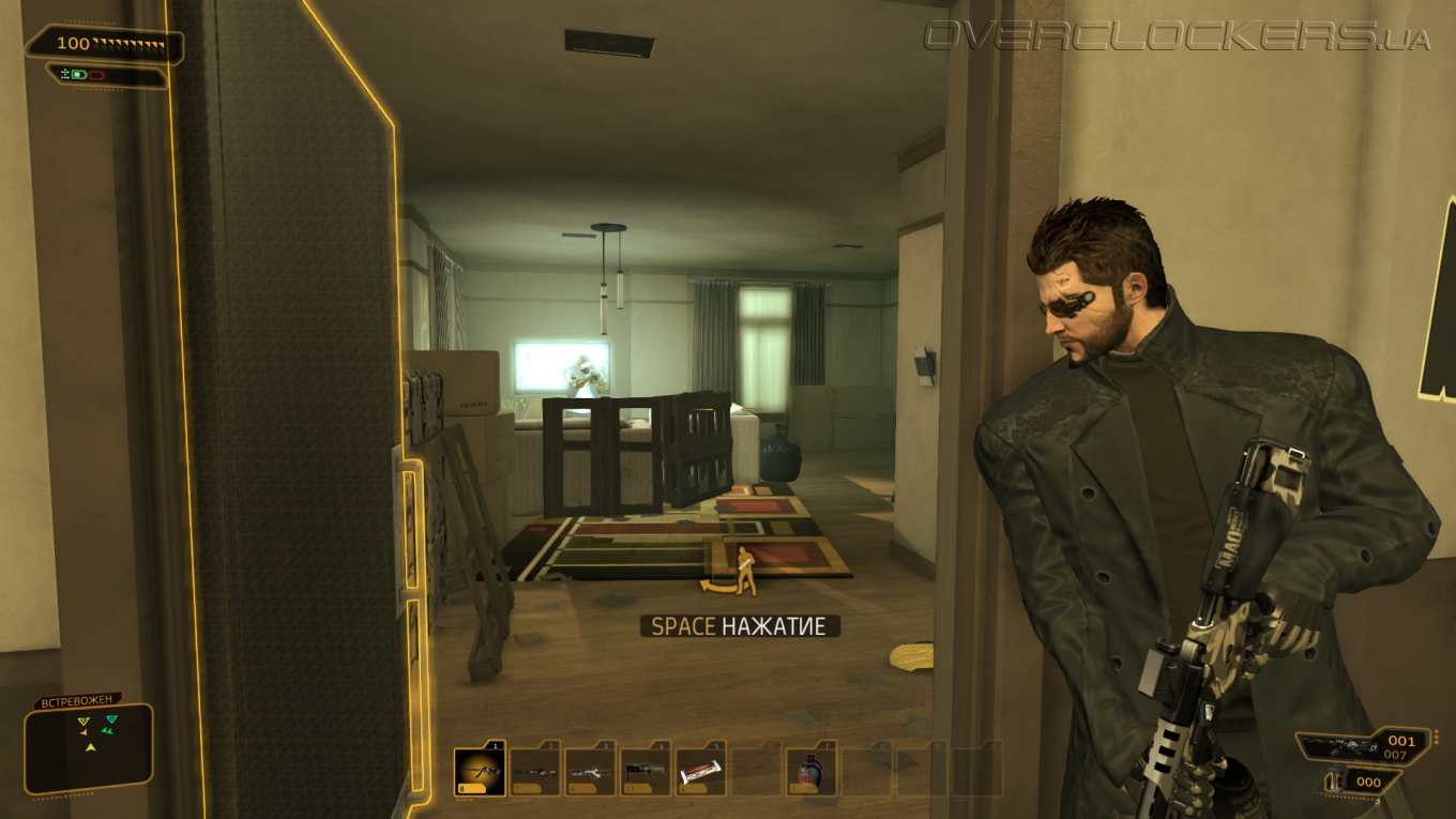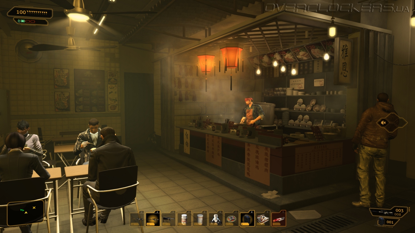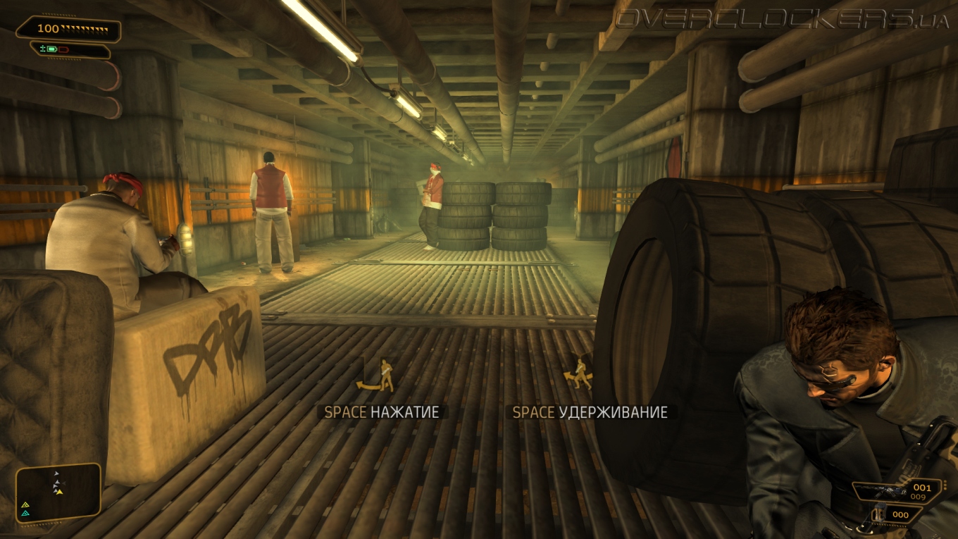 Выбор подручных средств для моих шпионских миссий тоже богат. Импланты и протезы дали мне большие возможностей, хотя не все они открыты сразу. Организму требовалось время, чтобы адаптироваться. Постепенно я привыкал, набирался опыта и улучшал свои возможности с помощью программного обеспечения «Праксис». Случайная подработка давала возможность излишки средств потратить на дополнительный «Праксис» в филиалах клиники Limb. Радар, отмечающий врагов, индикация их уровня тревоги и зоны видимости, рефлексы, позволяющие быстро вырубить врага голыми руками, броня и улучшение точности благодаря снижению отдачи — это лишь часть всего того, что позволяет новое тело. Временная невидимость и средство в купе с возможностью видеть сквозь стены позволяет быть более скрытным, повышение навыков взлома открывает доступ к компьютерам и замкам, улучшенные рефлексы помогут вырубать до двух противников за раз, модернизированные легкие позволят бегать быстрее и будут фильтровать вредные газы, электрогравитационная система торможения смягчит прыжок с любой высоты и при этом еще оглушит врагов. Шариф даже встроил в меня боевую систему «Тайфун», выстреливающую круговые взрывающие заряды. А в магазинчиках на черном рынке еще можно прикупить несколько улучшений для обычного оружия — увеличить урон, емкость обоймы, скорость перезарядки или поставить глушитель на пистолет и винтовку.