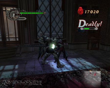 А пока герой наш наставляет на путь истинный творения дьявольские, в углу горит индикатор стиля. Круче бьешь, проводишь изощренные комбо и не попадаешь под вражеские ножи, клыки да штыки - тем больше шансов лучший рейтинг получить. По окончании уровня общий рейтинг подсчитывается, и на основе его очки призовые даются нам. За очки эти-то, в специальных местах, можно новые комбо-удары прикупить. Больше очков - более мощный комбо можно взять.