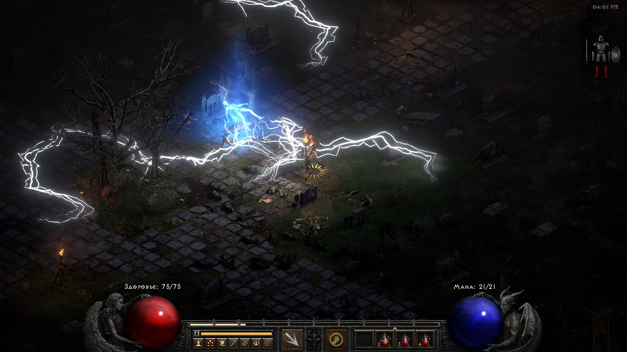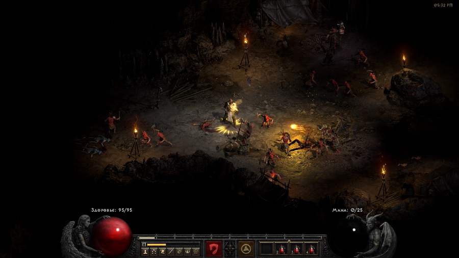 Визуальный стиль Diablo 2: Resurrected одновременно впечатляет и вызывает чувство ностальгии. Герои, окружение и локации выглядят максимально реалистично, современно и атмосферно. В то же время оставленная создателями старая анимация движений добавляет игре ламповости и аутентичности. На месте и те самые звуки подъема бутылки с эликсиром, выпавшее кольцо, скрип дверей и прочее. Все как в детстве: в компьютерных клубах, классе информатики или дома у друга. Все это в свое время я хотел почувствовать при выходе Diablo 3, но не вышло. А вот сейчас получилось.