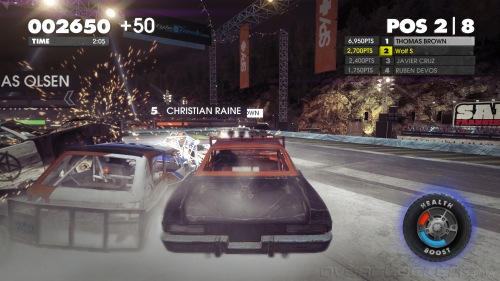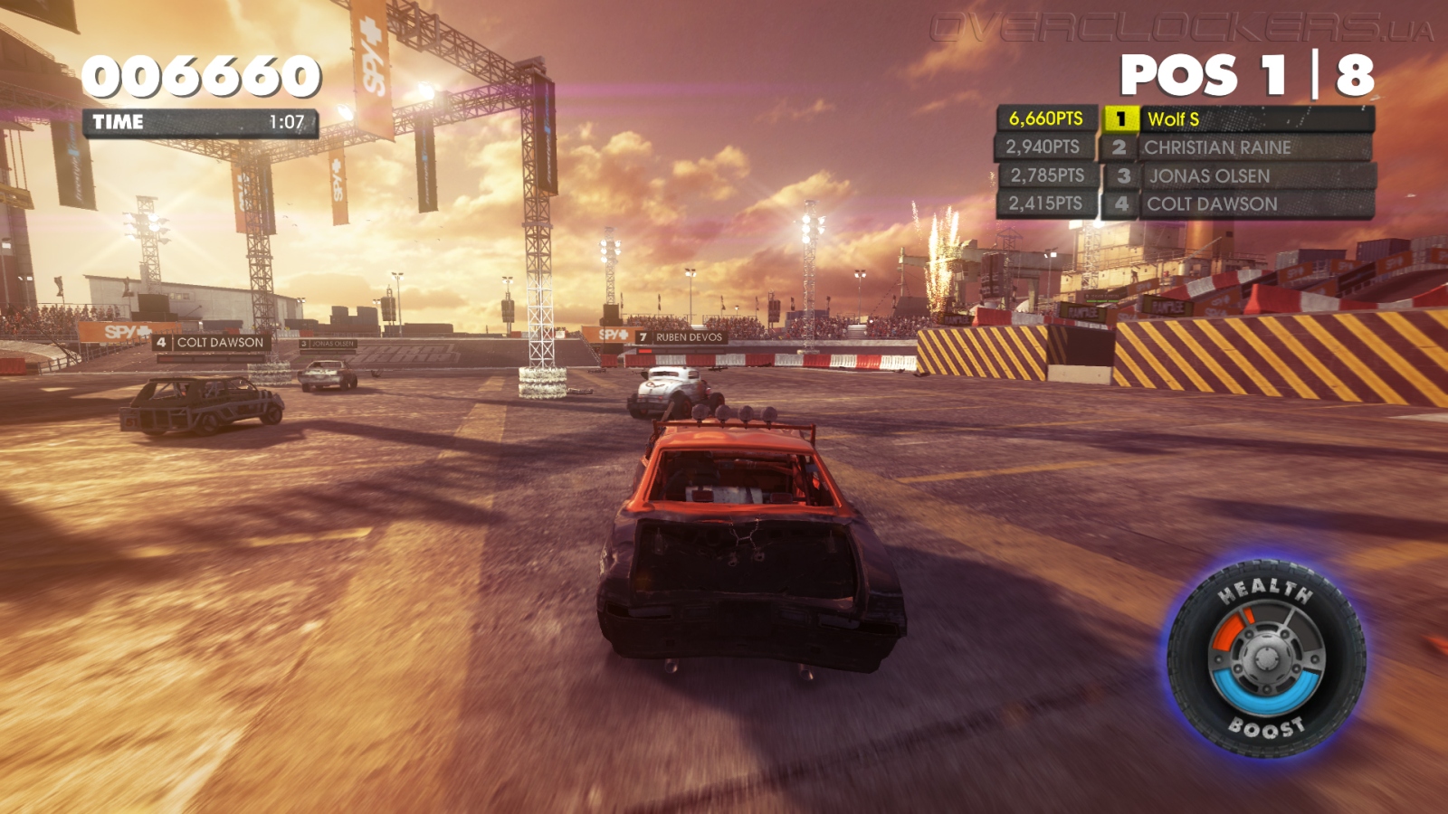 Игра предлагает набор разнообразных соревнований, основной фишкой которых стала возможность «физического» противостояния с машинами соперников. Теперь не нужно бояться зацепить машину противника, даже наоборот — лучше хорошенько разогнаться и словить ее на повороте метким ударом вбок. Бояться повреждений тоже не стоит. На управление они не влияют, все удары сказываются только на внешнем виде — мнется кузов, бьются стекла, отлетают капот и двери. И чтобы по максимуму насладиться таким зрелищем игрокам предлагается соответствующий режим: нас выпускают за замкнутую арену, где мы устраиваем настоящую бойню, пытаясь разнести вдребезги автомобили соперников. Ну прямо как в старом добром FlatOut.