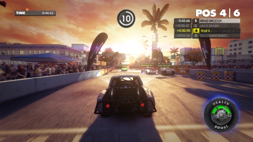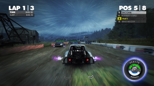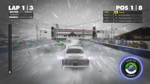 При этом есть и обычные гонки за лидерство, но на трассе с небольшими препятсвиями. Биться и тараниться на таких трассах уже не имеет особого смысла — больше шансов навредить себе, чем помочь. Управление хоть и стало проще, но наследие раллийных DiRT чувствуется очень хорошо. В таких гонках нужно быть предельно внимательным, хорошо проходить повороты не допускать ни одной ошибки. Разнообразия добавляют разные погодные условия и разное дорожное покрытие. На асфальте, в грязи и на снегу машина ведет себя по-разному, хотя, конечно, управлять ей все равно проще, чем в это было в старых играх. Но в целом, такие соревнования все равно приедаются. Радуют в них разве что новые декорации.