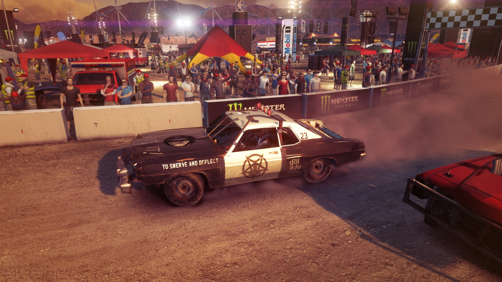 Все доступные нам для автомобильных сражений машины отличаются своими характеристиками. Один автомобиль более маневренный, другой мощнее, третий прочнее. Поэтому даже в противостоянии фургончика и малыша, напоминающего старенький Golf, последний не лишен шансов на успех. Автопарк разделен на три категории в зависимости от типа соревнований — Racing, Demolition и Hoonigan. Соответственно, для гонок, автомобильных «битв» и трюков. Большинство автомобилей выдуманы, хотя встречаются и лицензированные модели. Трюки можно выполнять на Subaru Impreza, Ford Mustang или Mitsubishi Lancer, без которых не обходились и старые DiRT. Приобретать новые модели в свой гараж мы будем за средства, которые выдаются по итогам прохождения каждой гонки. У каждого автомобиля всего лишь три параметра — мощность, вес и управляемость. Их можно поднять. Данный процесс максимально прост, никакого ковыряния в деталях — просто стали на нужную полоску и купили +1 единицу к ней. На деле выбор транспортного средства в одиночных чемпионатах иногда вообще не играет роли. Противники подстраиваются под нас. Поэтому, если не получается пройти какой-то этап, самый простой способ — выбор раритетного автомобиля середины прошлого века, на котором без лишнего шума можно будет легко обойти всех на особо извилистой трассе. Зато в «бойцовских» соревнованиях выбор правильного автомобиля «под себя» дает весьма ощутимый эффект.