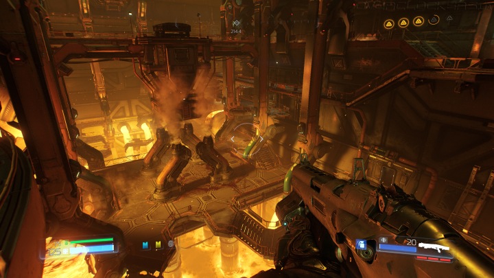 Игра состоит из взаимосвязанных арен и отдельных коридорных эпизодов. При этом каждая локация обладает сложной многоэтажной архитектурой с множеством проходов и смежных коридорчиков. Начиная в одной точке уровня, мы постепенно активируем какие-то ключевые объекты в других местах, исследуя всю территорию. И в некоторых случаях даже имеем определенную свободу действий в рамках одного уровня. А разбросанные припасы и секреты заставляют внимательнее относиться к каждому повороту или уступу, ища новые пути.